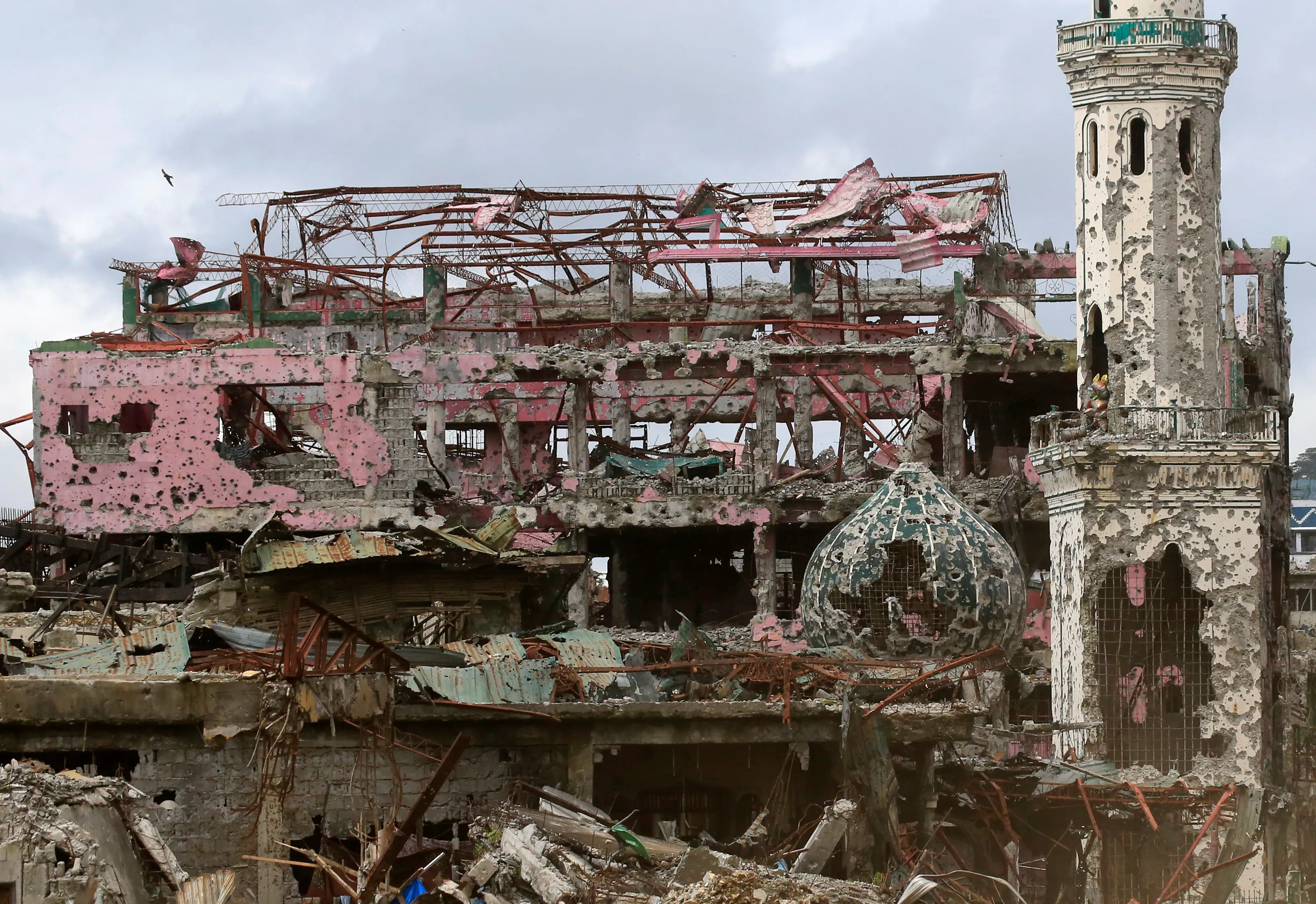 Damaged houses, buildings and a mosque are seen inside Marawi city, Philippines, October 25, 2017. (Photo by Romeo Ranoco/Reuters)