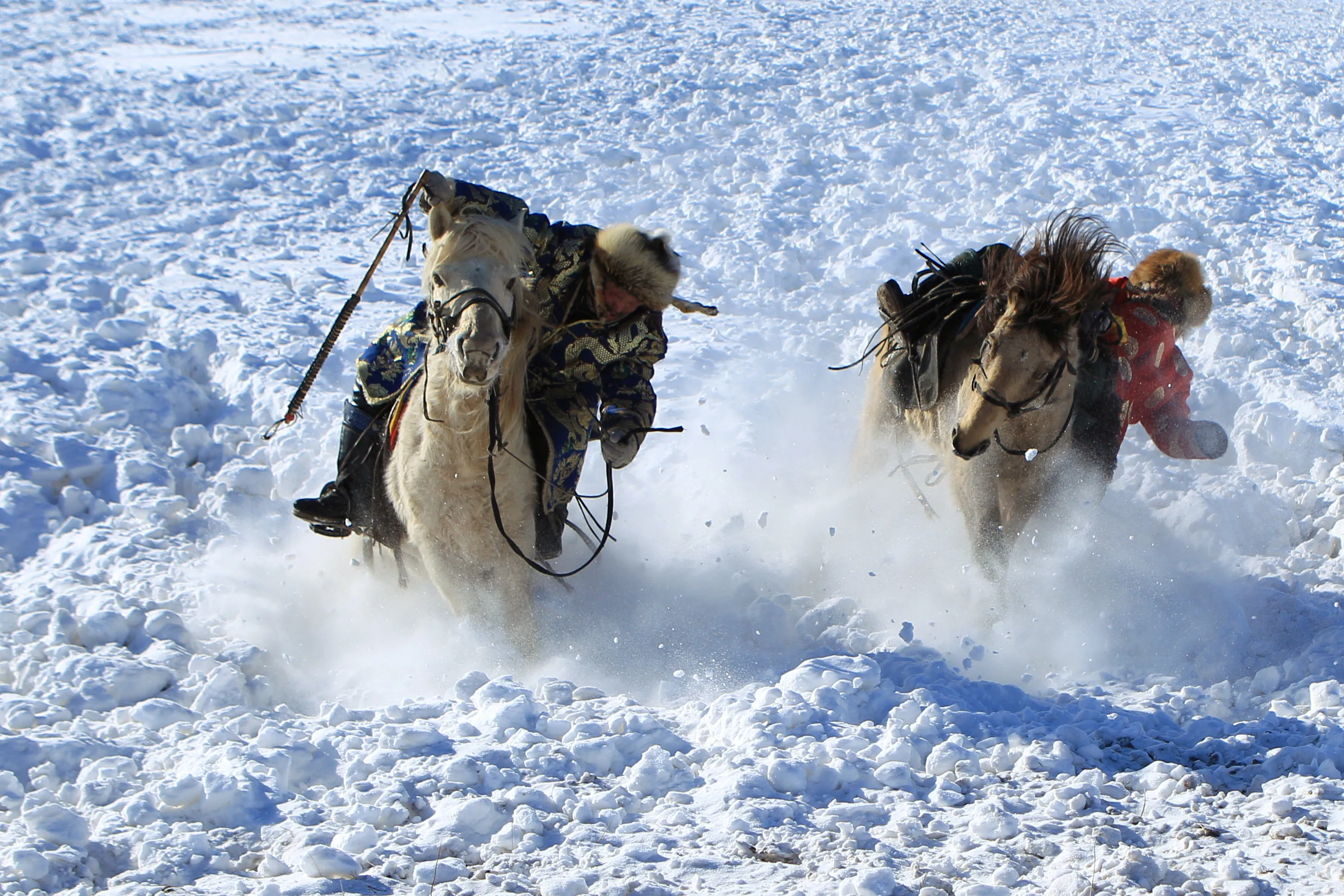 Herdsmen tame horses on a snow-covered pasture in Xilingol, Inner Mongolia Autonomous Region, China December 26, 2017. (Photo by Ma Jianquan/Reuters)