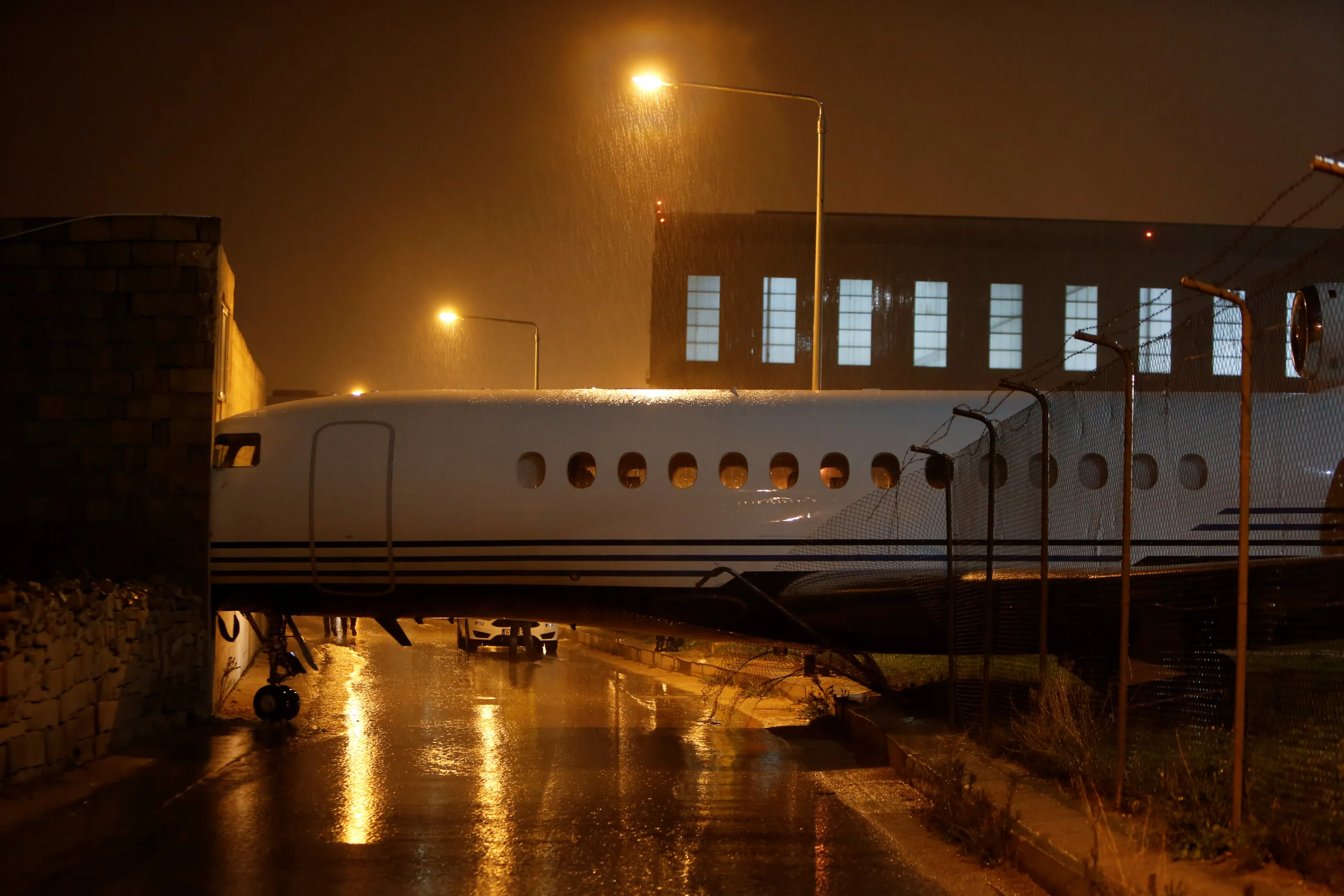 A privately-owned Dassault Falcon 7X business jet aircraft is seen after it was blown off the airport apron and into an adjacent building as strong winds hit the Maltese islands, according to local media, at Malta International Airport in Luqa, Malta, December 27, 2017. (Photo by Darrin Zammit Lupi/Reuters)