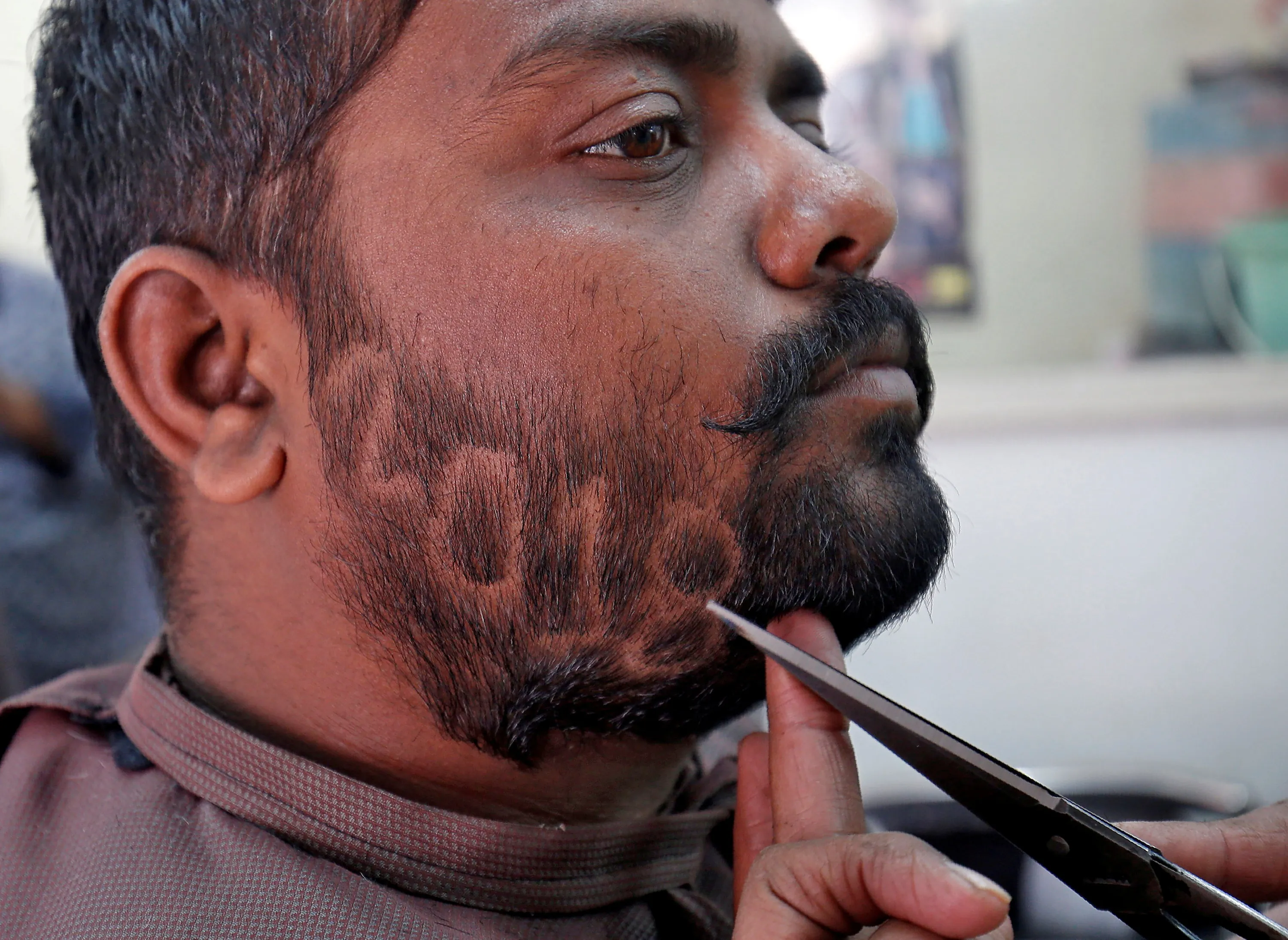 A man has his beard trimmed to show number 2018 to welcome the New Year inside a barbershop in Ahmedabad, India, December 29, 2017. (Photo by Amit Dave/Reuters)