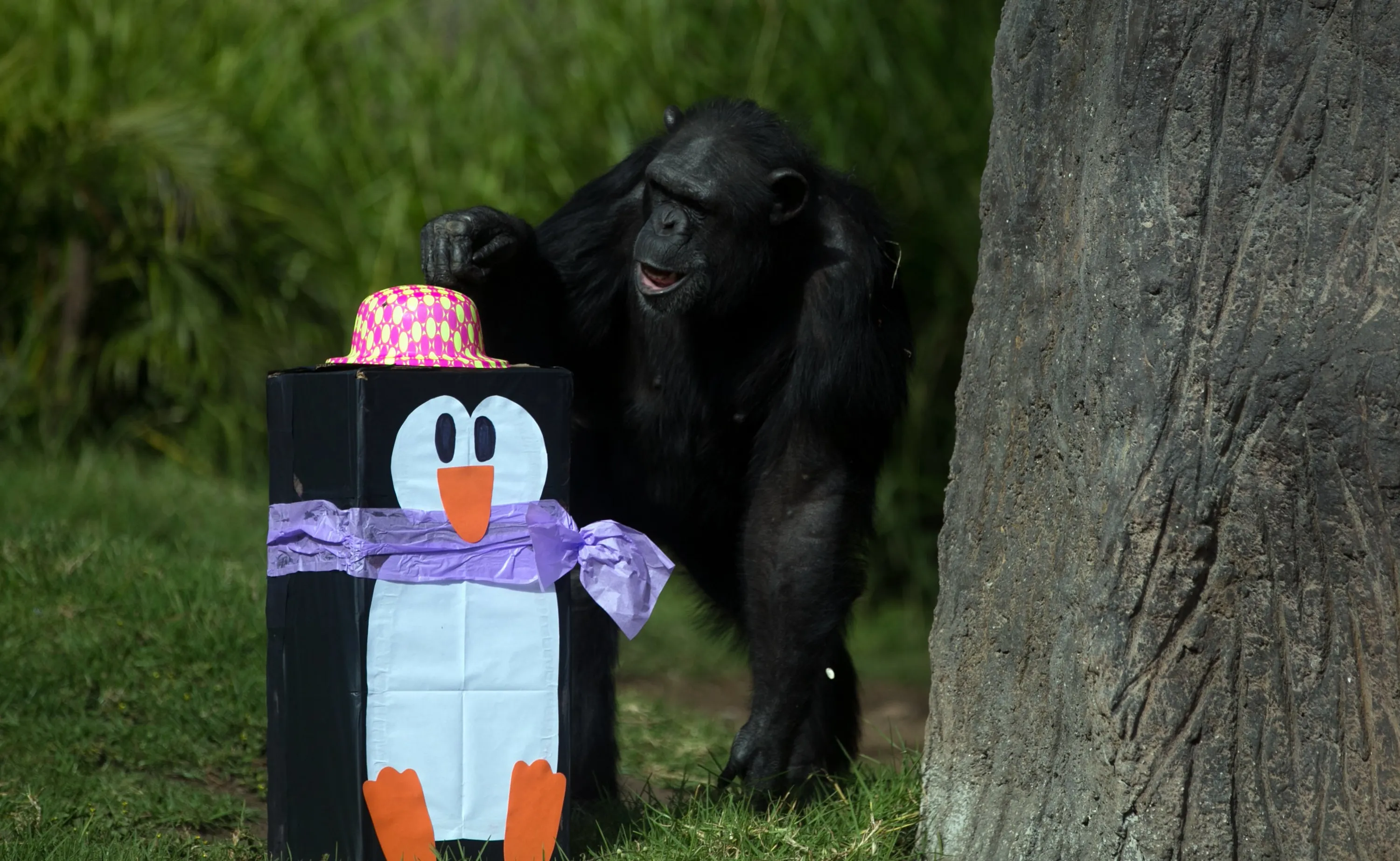 The chimpanzees receive their Christmas gifts, including some candy, allowed on their diet, as part of the activity “Zoorprises for Christmas” at La Aurora zoo in Guatemala City, Guatemala, 17 December 2017. (Photo by Esteban Biba/EPA/EFE)