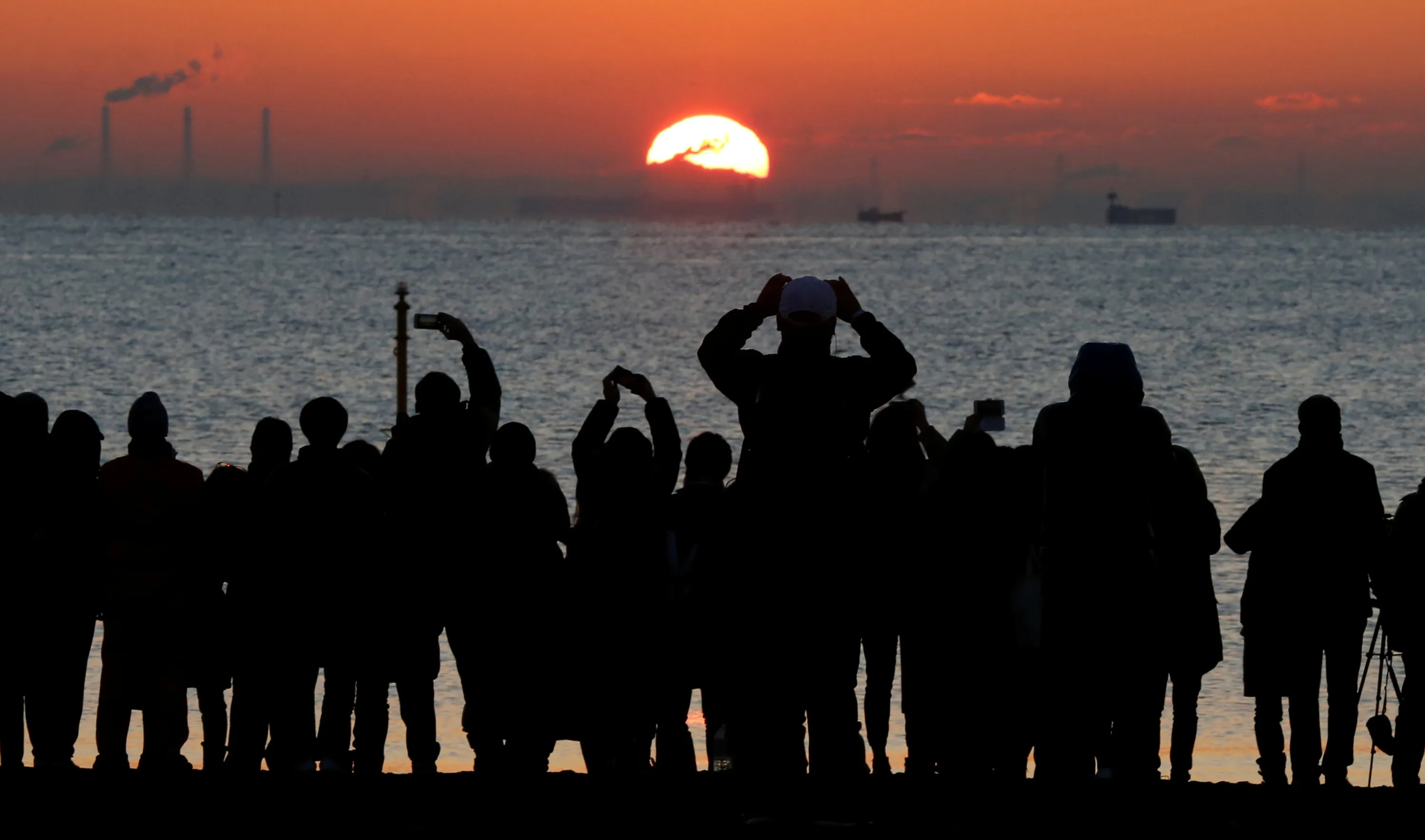 People watch the first sunrise on New Year's Day at a beach in Tokyo, Japan, January 1, 2018. (Photo by Toru Hanai/Reuters)