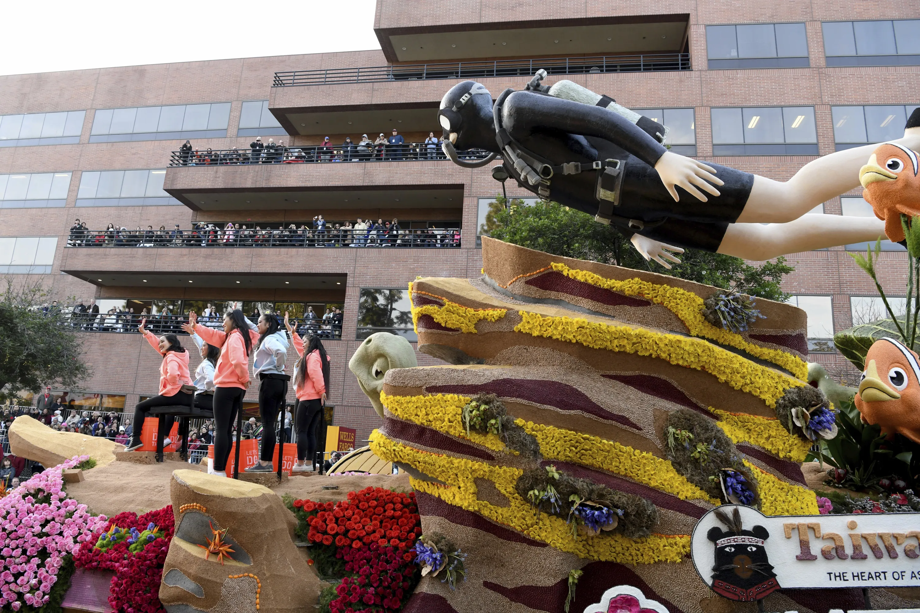 The China Airlines float makes its way along the parade route and won the International Award at the 129th Rose Parade in Pasadena, Calif., Monday, January 1, 2018. (Photo by Michael Owen Baker/AP Photo)