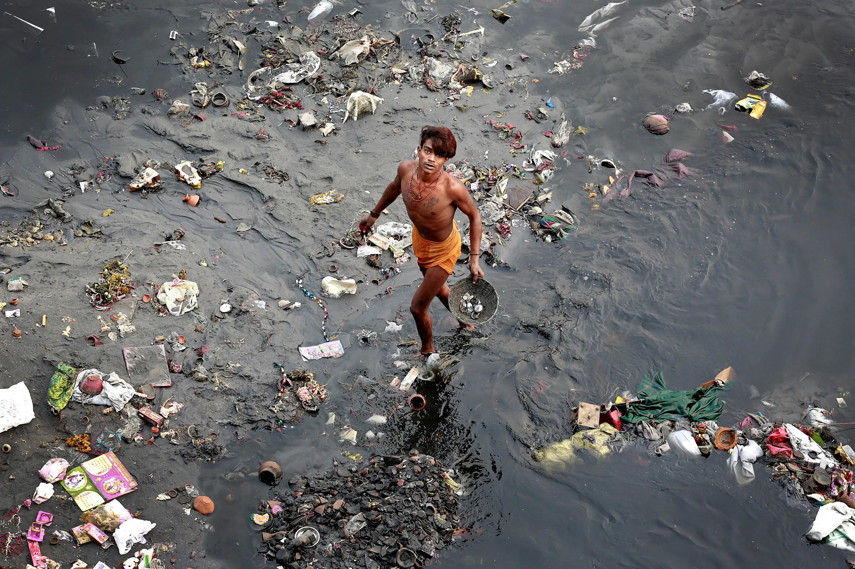 A man sifts through rubbish in the Yamuna river in Delhi, India, October 31, 2017. (Photo by Cathal McNaughton/Reuters)