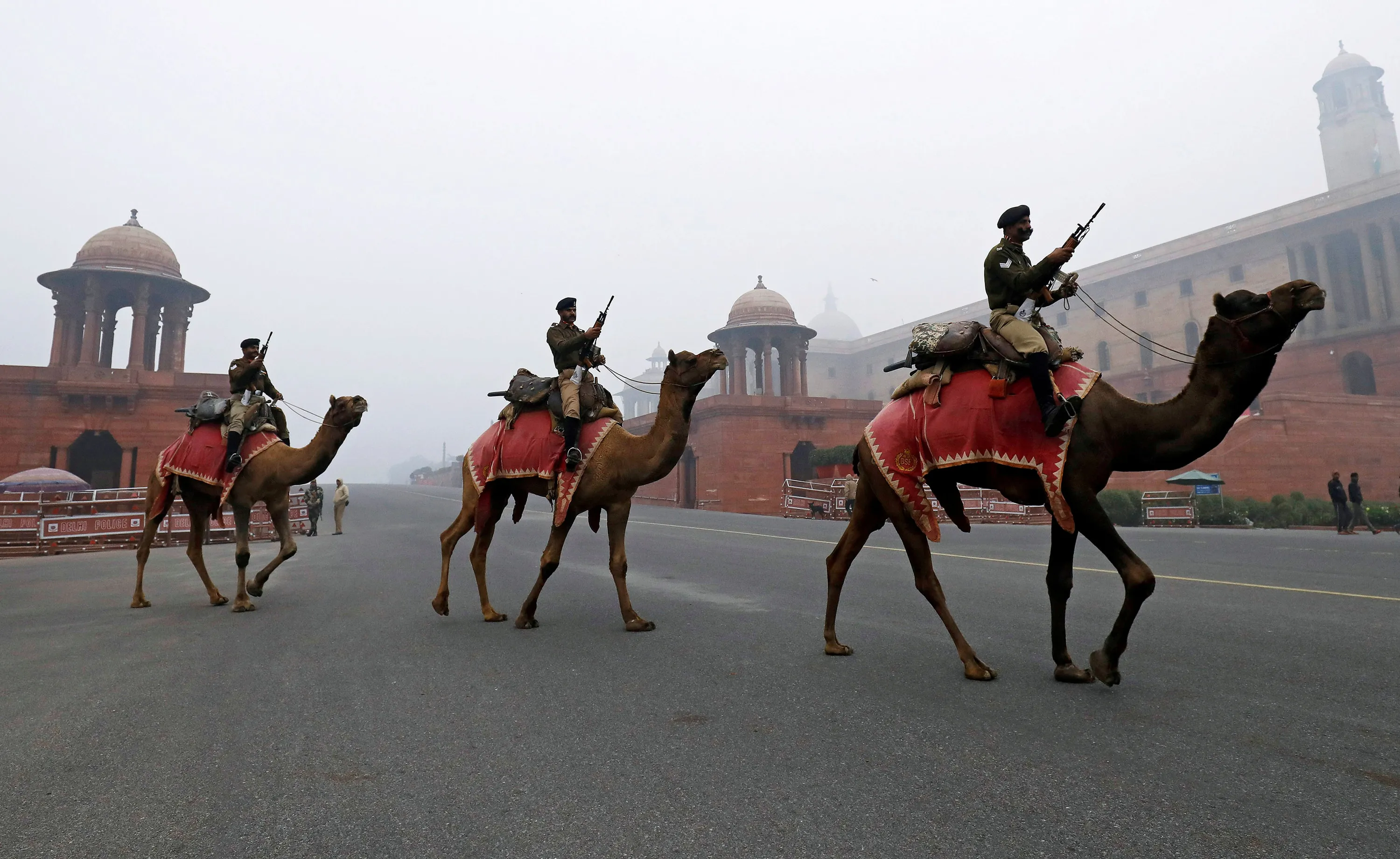 Members of the Indian Border Security Force (BSF) ride their camels during rehearsals for the Republic Day parade on a winter morning in New Delhi, India January 5, 2016. (Photo by Saumya Khandelwal/Reuters)