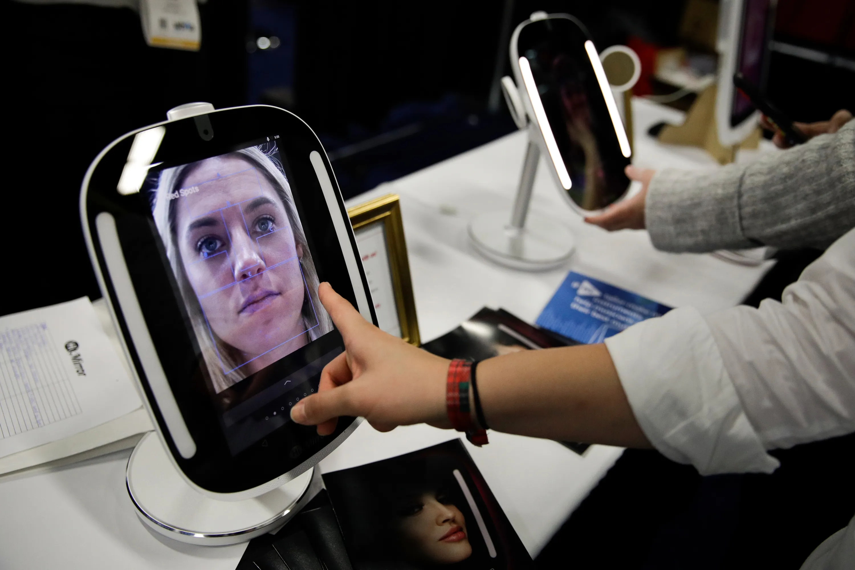 The HiMirror Mini, an internet-connected smart mirror with Amazon's Alexa, is displayed during CES Unveiled at CES International Sunday, January 7, 2018, in Las Vegas. (Photo by Jae C. Hong/AP Photo)