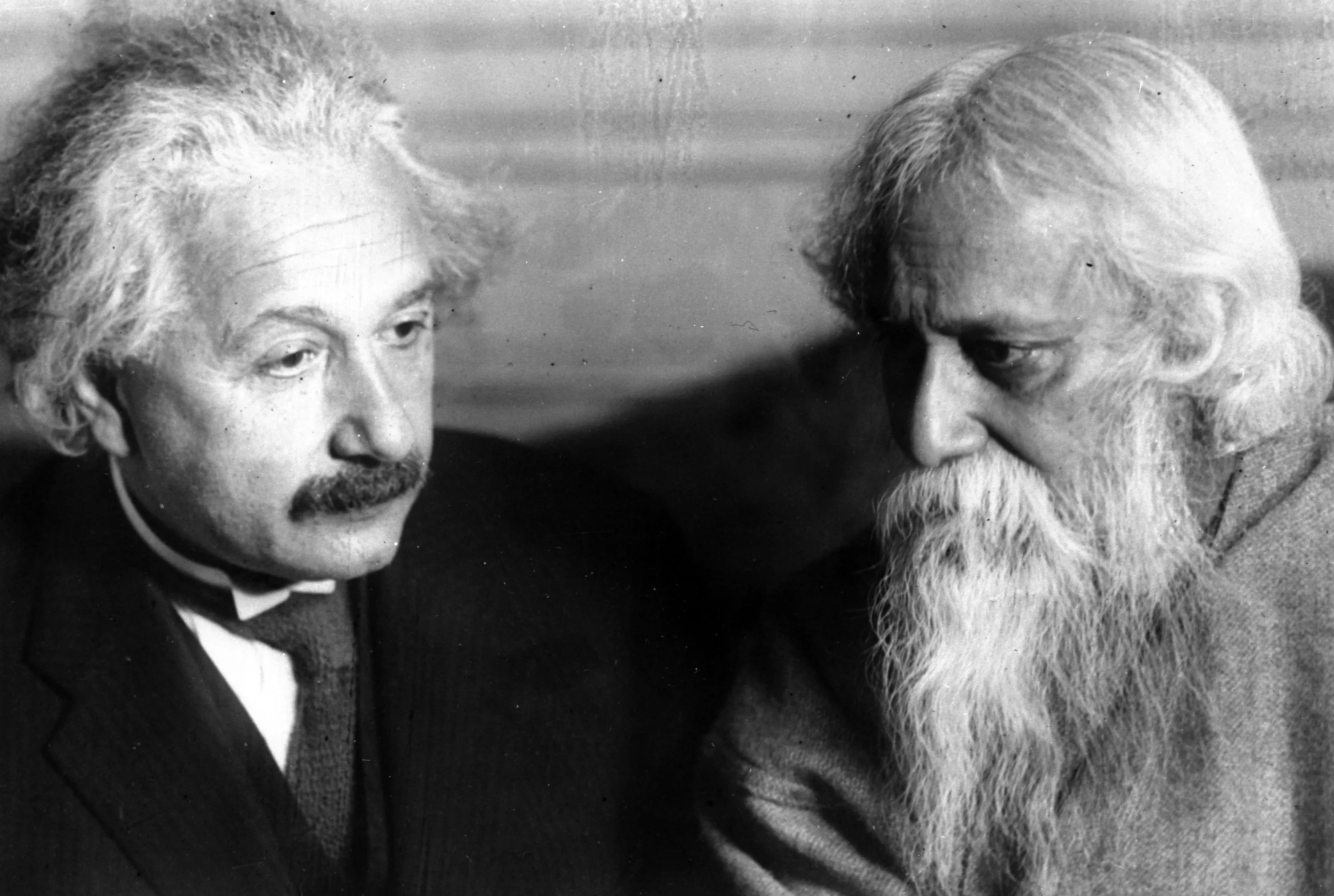 Professor Albert Einstein, author of the Theory of Relativity, calls upon Rabindranath Tagore, right, noted Indian poet and philosopher, in New York, December 15, 1930. (Photo by AP Photo)