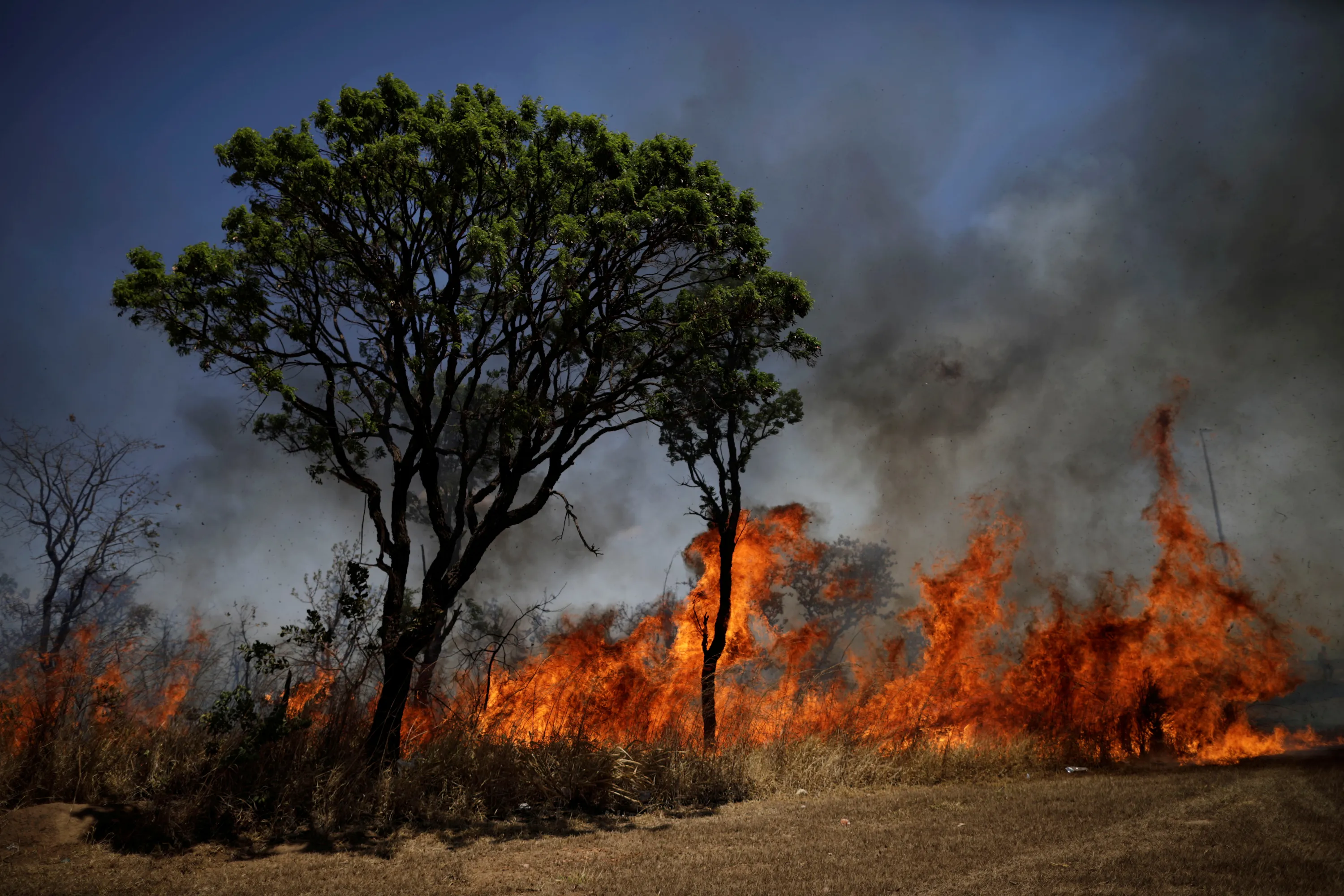 View of the devastation caused by a forest fire in front of Brasilia's National Park, in Brasilia, Brazil, September 19, 2017. (Photo by Ueslei Marcelino/Reuters)