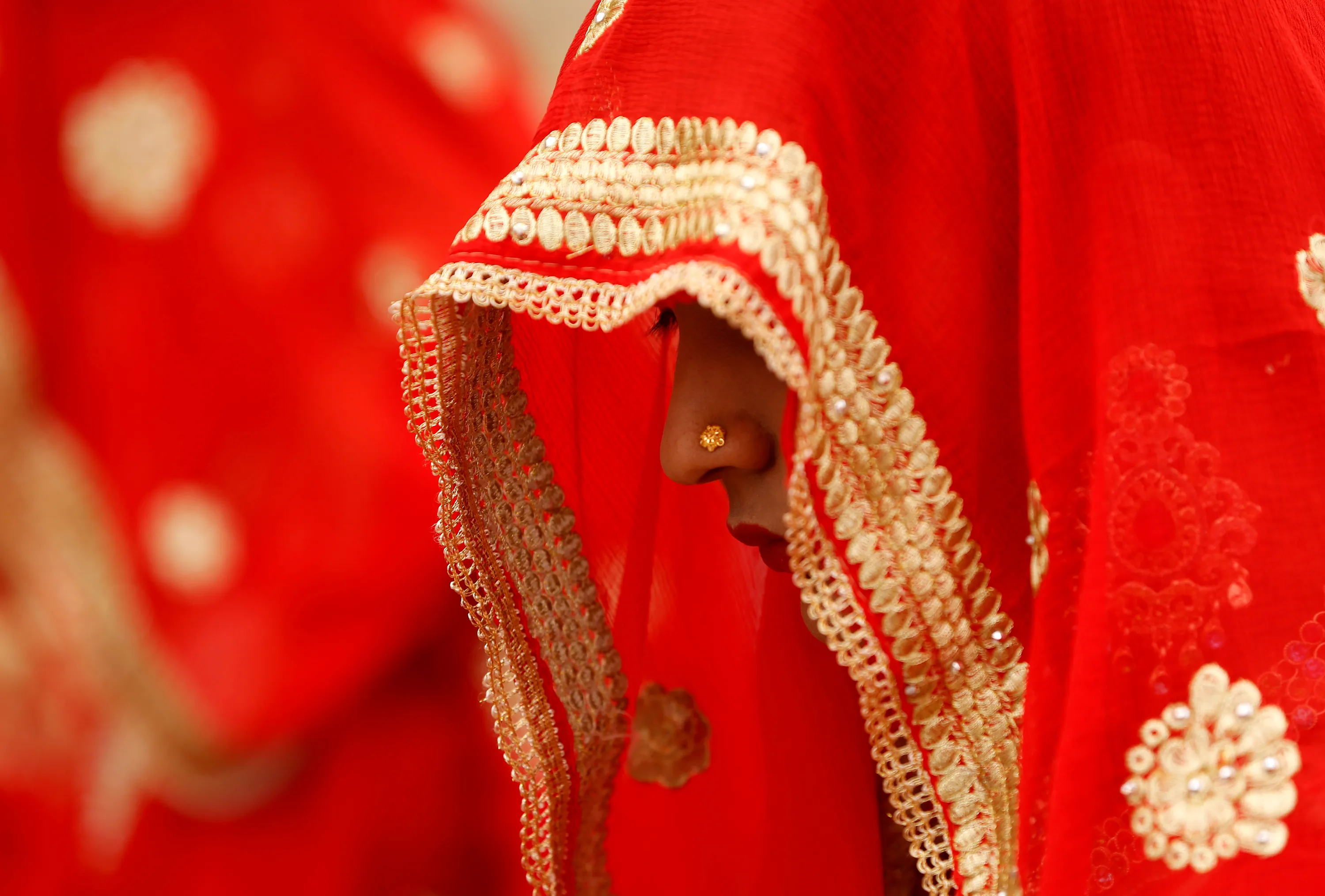A bride waits to take her wedding vows during a mass marriage ceremony in which, according to its organisers, 111 Muslim couples took their wedding vows, at a mosque in Ahmedabad, January 11, 2018. (Photo by Amit Dave/Reuters)