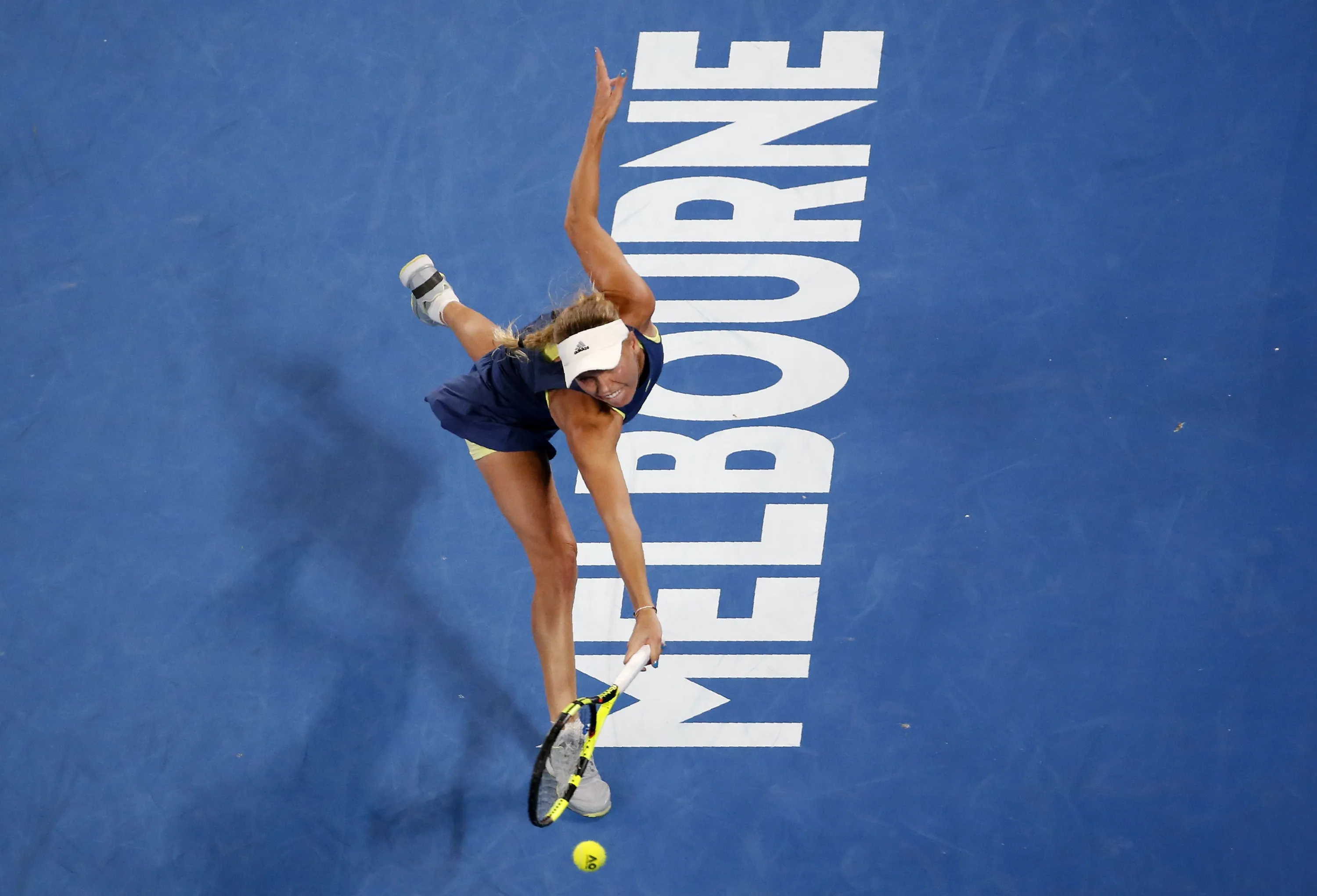 Denmark' s Caroline Wozniacki hits a return against Spain' s Carla Suarez Navarro during their women' s singles quarter- finals match on day nine of the Australian Open tennis tournament in Melbourne early January 24, 2018. (Photo by Toru Hanai/Reuters)