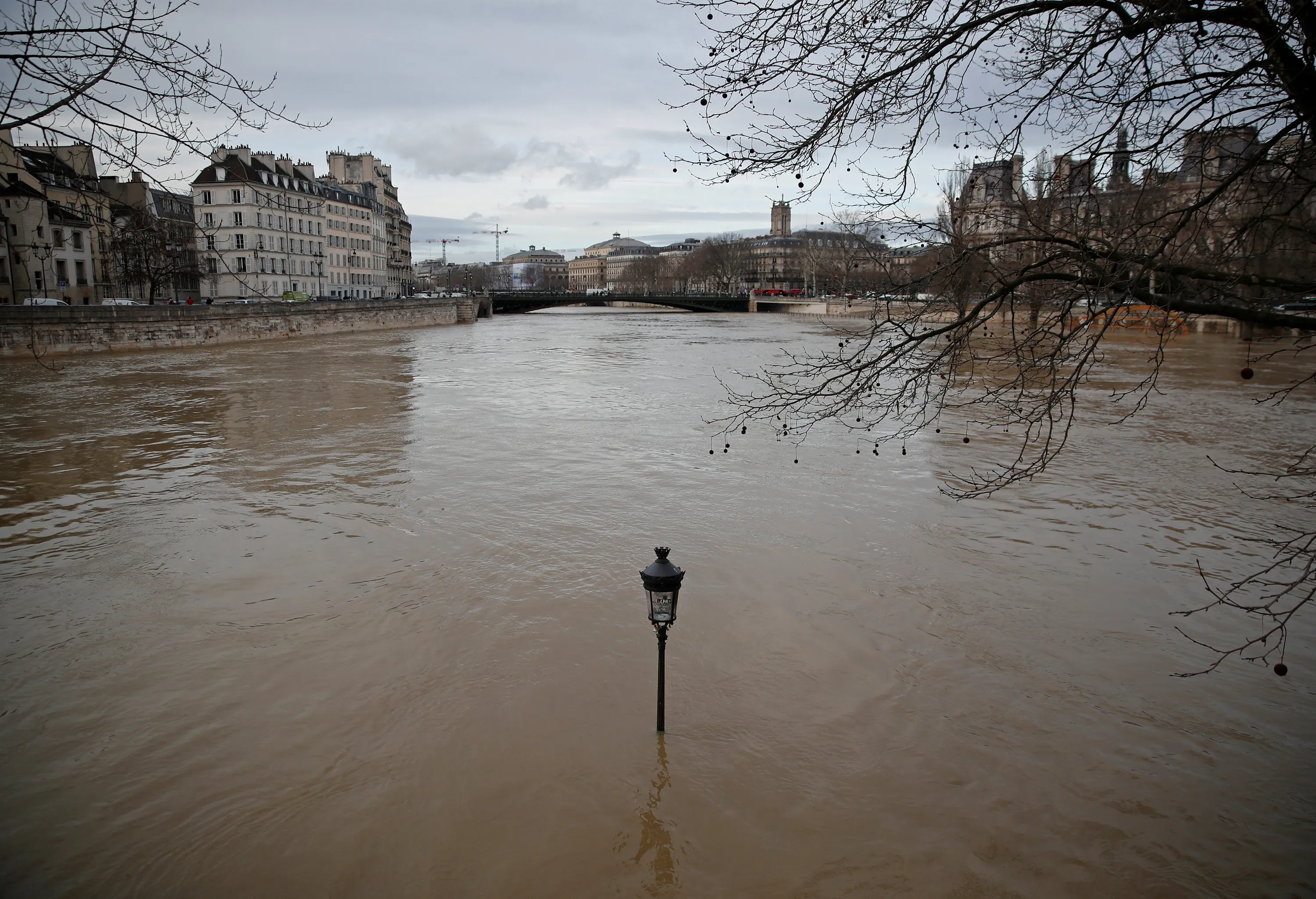 A street-lamp is seen on the flooded banks of the Seine River in Paris, France, after days of almost non-stop rain caused flooding in the country, January 24, 2018. (Photo by Christian Hartmann/Reuters)
