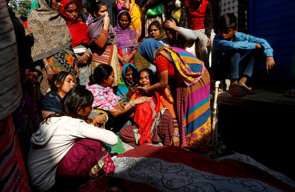 Relatives mourn next to the dead body of a victim, who was killed in Saturday’s fire in a warehouse, in New Delhi, India, January 21, 2018. (Photo by Adnan Abidi/Reuters)