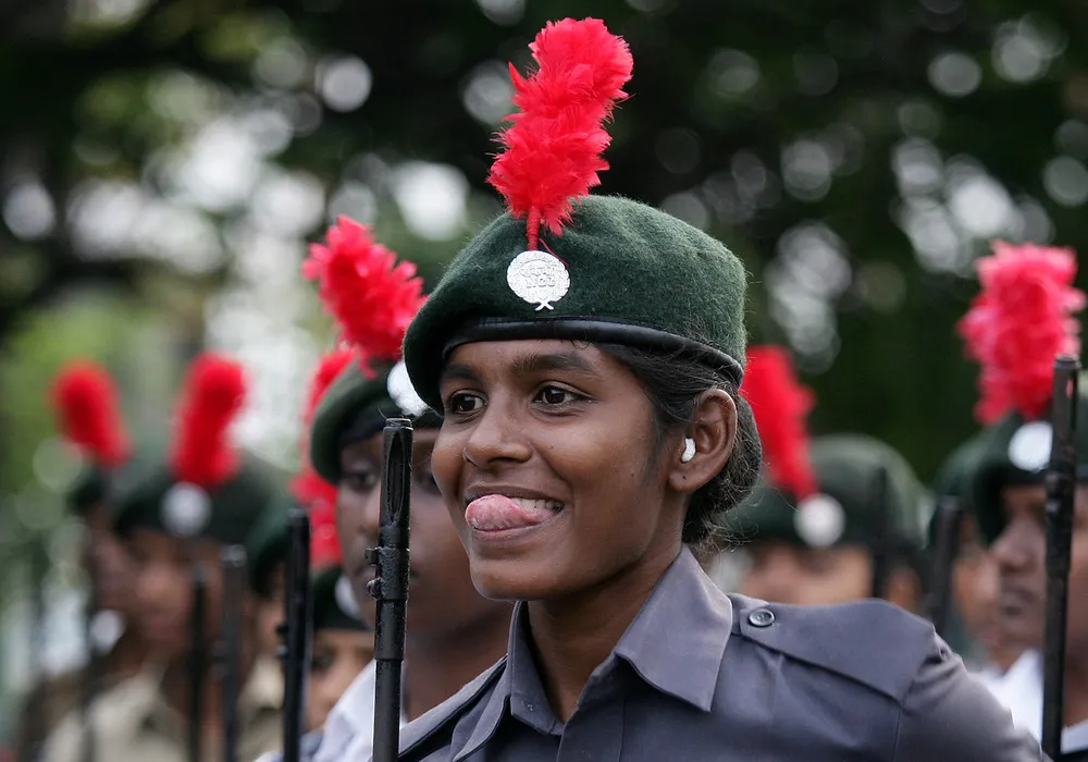 A member of the National Cadet Corps (NCC) reacts as she takes part in a rehearsal for the Republic Day parade in Chennai, January 22, 2018. (Photo by P. Ravikumar/Reuters)
