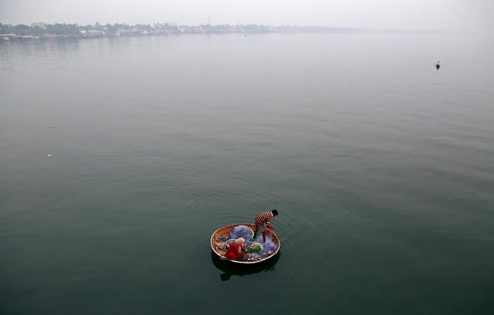 A fisherman and his wife catch fish in the waters of Vembanad Lake in Kochi, India, January 24, 2018. (Photo by Sivaram V/Reuters)