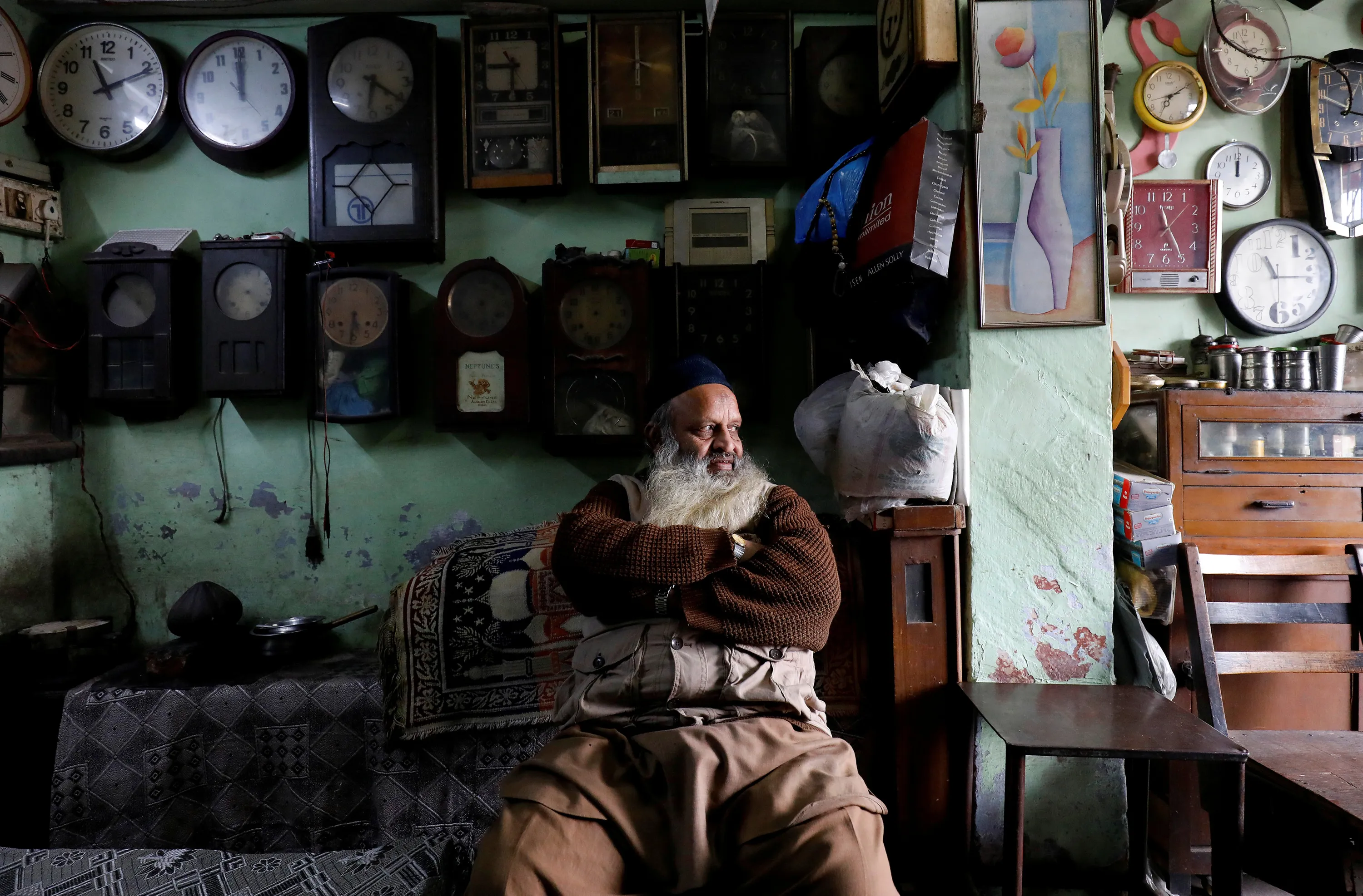 A man sits inside his 42-year old shop of antique clocks in the old quarters of Delhi, India, January 24, 2018. (Photo by Saumya Khandelwal/Reuters)
