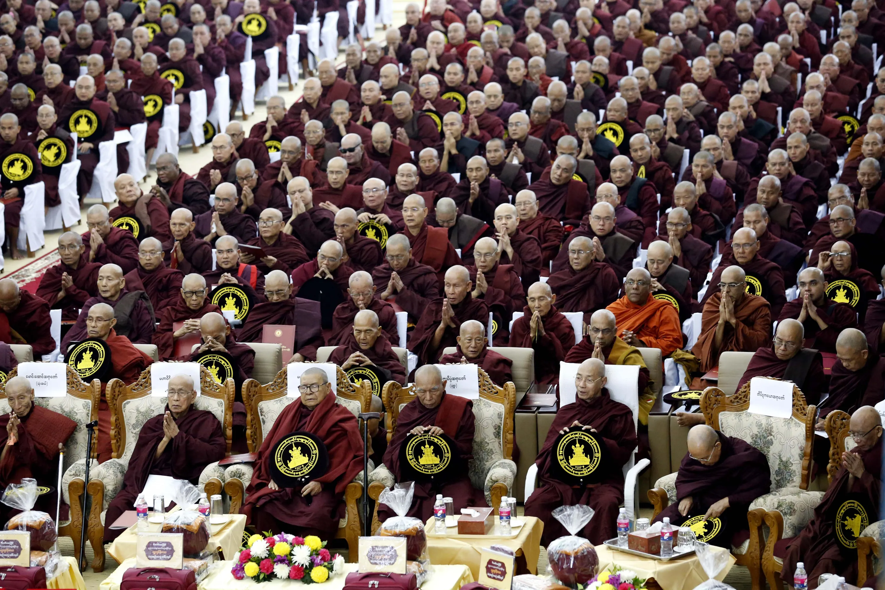 Buddhist monks attend the 20th annual Shwekyin Nikaya Conference at the Dhammaduta Zetawon Tawya Monastery in Hmawbi, on the outskirts of Yangon, Myanmar, 29 January 2018. Shwekyin Nikaya is the name of the second largest monastic order of monks in Myanmar and founded in the mid-19th century. The annual conference is held every three year and about 800 Buddhist monks attend the conference from 29 to 31 January 2018. (Photo by Nyein Chan Naing/EPA/EFE)
