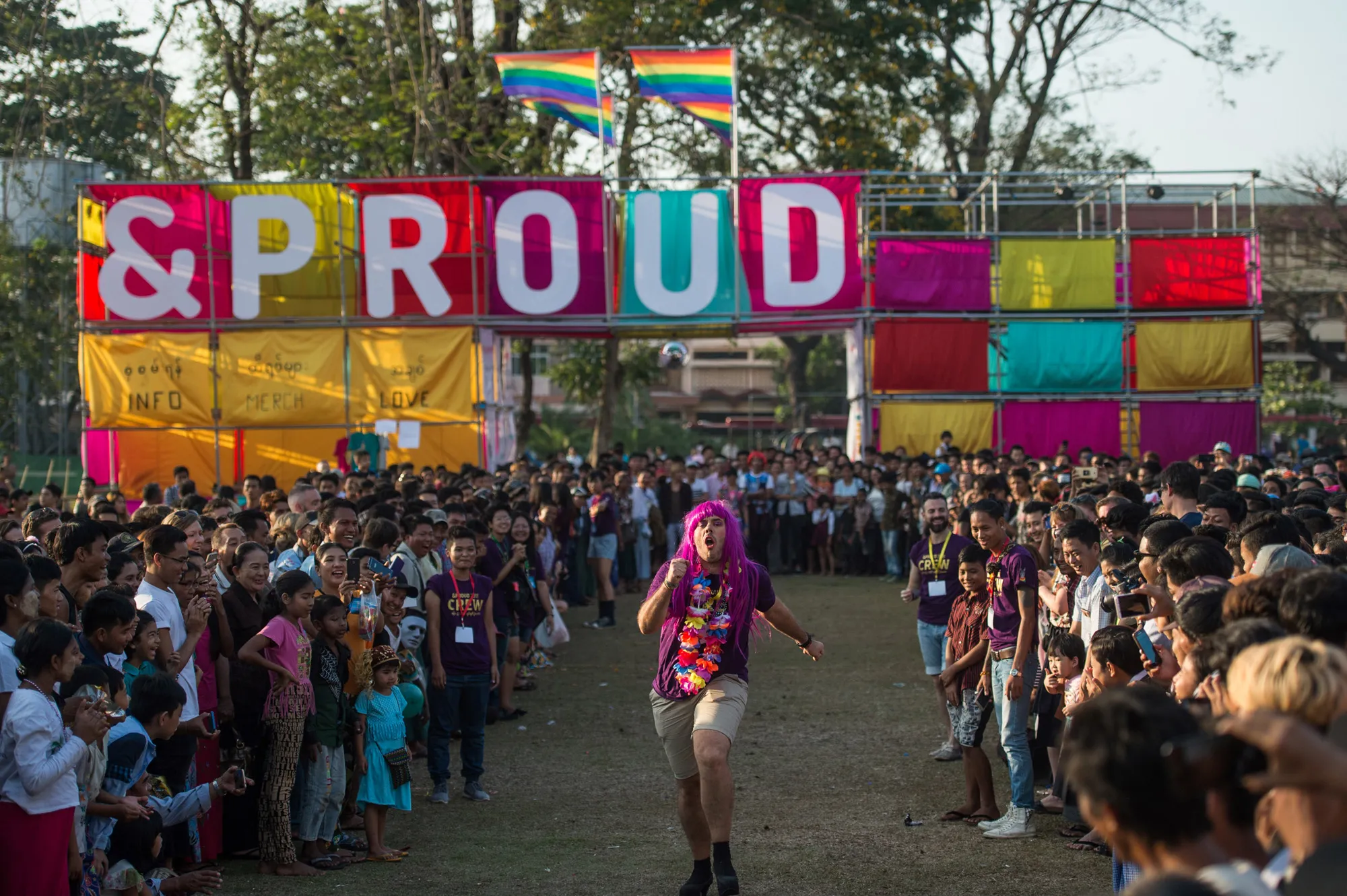 This photo taken on January 28, 2018 shows a participant (C) running in a high-heel game during the “&Proud” LGBT festival in Yangon. (Photo by Ye Aung Thu/AFP Photo)