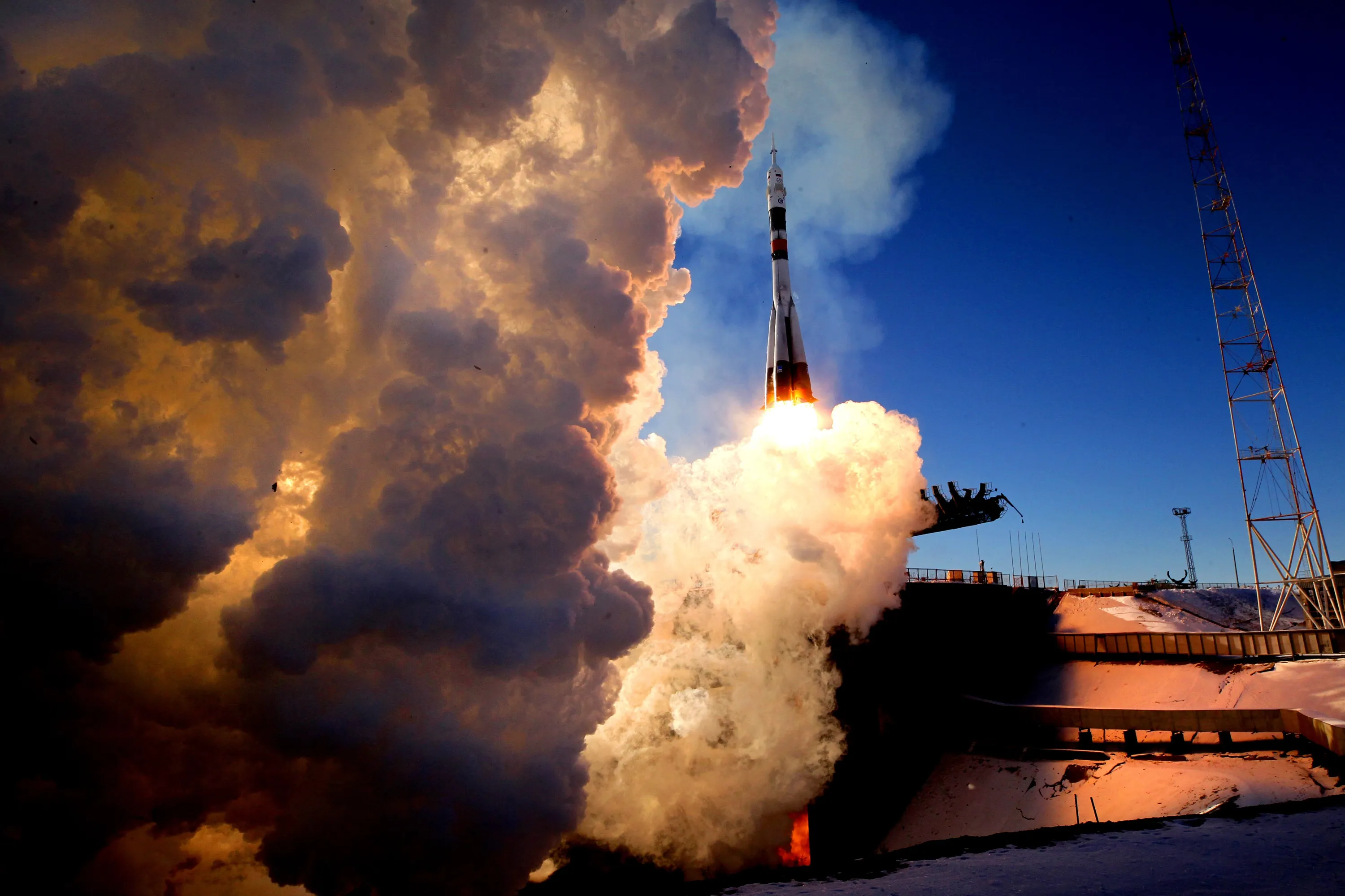 The Russian Soyuz booster rocket FG with Soyuz MS-07 spacecraft lifts off from the launch pad at Baikonur Cosmodrome in Kazakhstan, 17 December 2017, carrying the expedition 54/55 crew members, Roscosmos cosmonaut Anton Shkaplerov, NASA astronaut Scott Tingle and Norishige Kanai of the Japan Aerospace Exploration Agency (JAXA), to the International Space Station (ISS). (Photo by Maxim Shipenkov/EPA/EFE/Rex Features/Shutterstock)