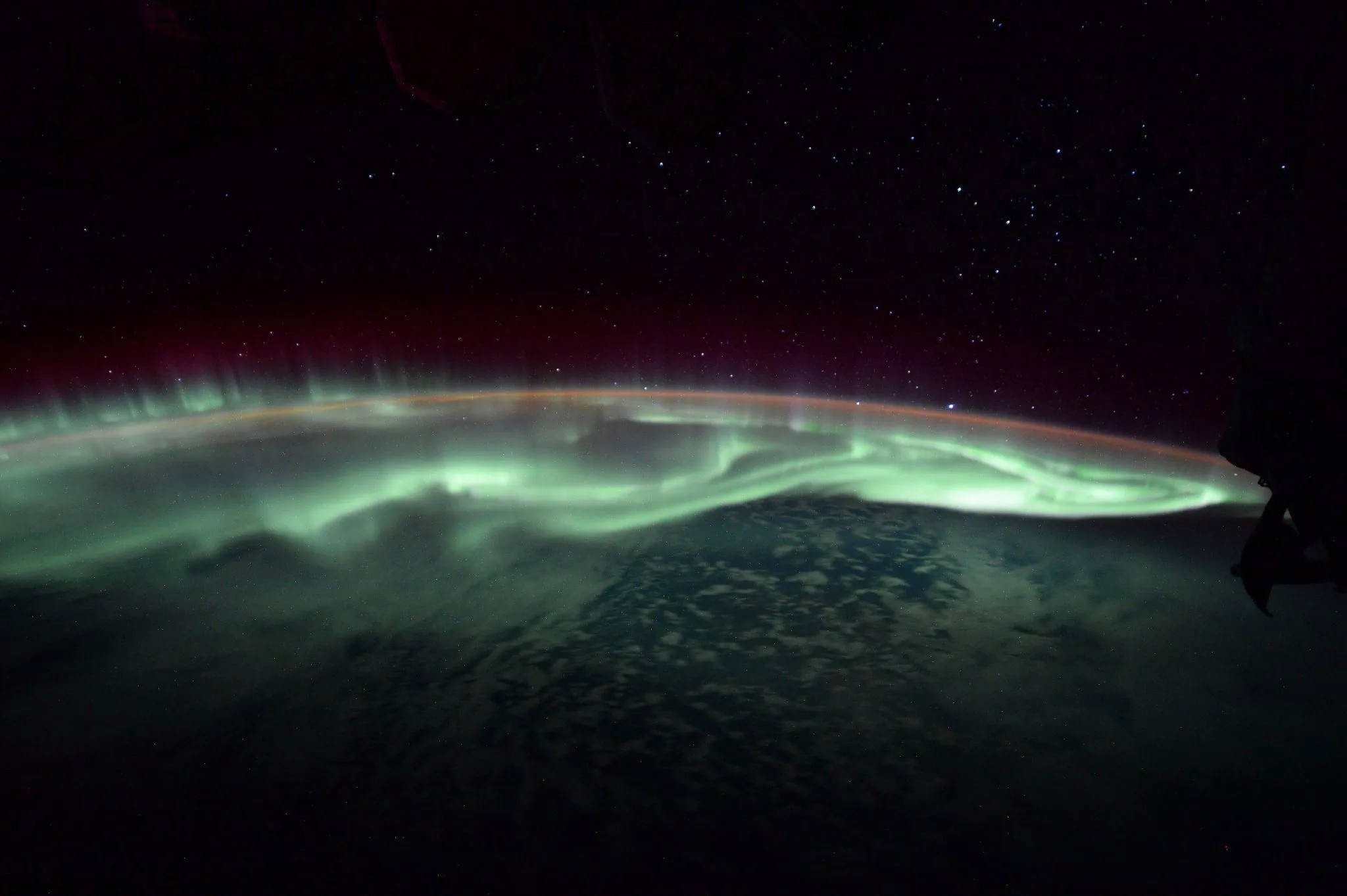 An aurora hovers above the Earth in this image captured aboard the ISS by Jack Fischer and released on July 11, 2017. “One of my favorite things to do in my free time is watch the Aurora – it’s almost alive, as it slathers up the sky in awesome sauce”, wrote Fischer on Twitter. Auroras occur when electrically charged particles from the sun collide with neutral atoms in the upper atmosphere. (Photo by Jack Fischer/NASA)