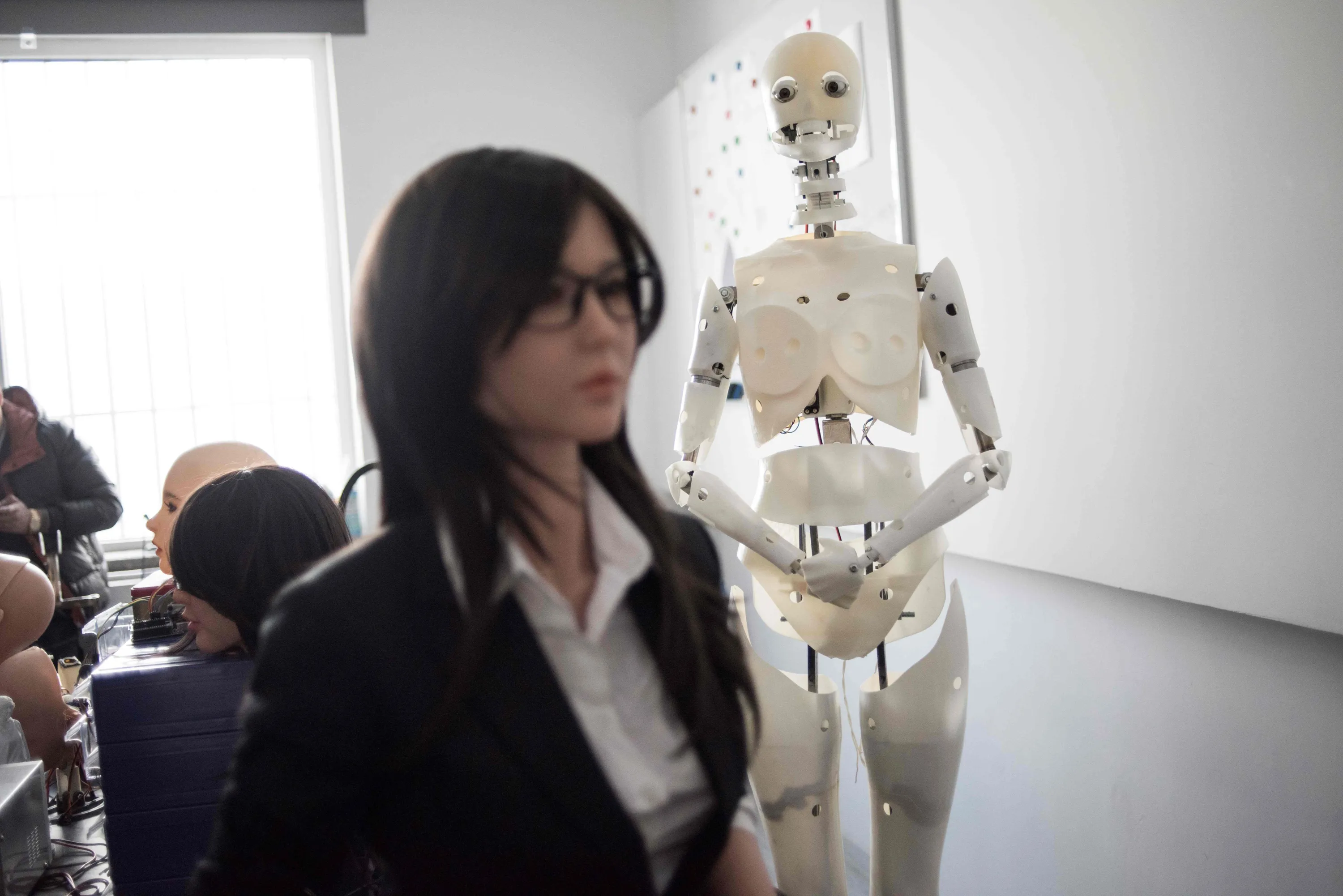 This photo taken on February 1, 2018 shows robots in a lab of a doll factory of EXDOLL, a firm based in the northeastern Chinese port city of Dalian. (Photo by Fred Dufour/AFP Photo)