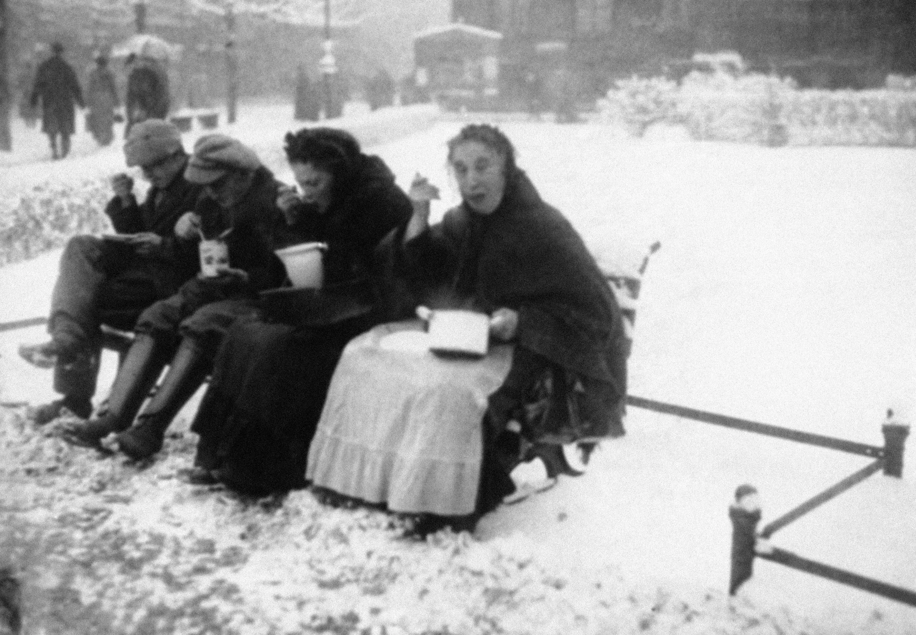 Sharing one of a warm meal from one of the municipal kitchens of Berlin on December 14, 1923, where the heat of the food is a pleasant treat for the poor populace who take the advantage of warmth to guard against the chilly weather. (Photo by AP Photo)