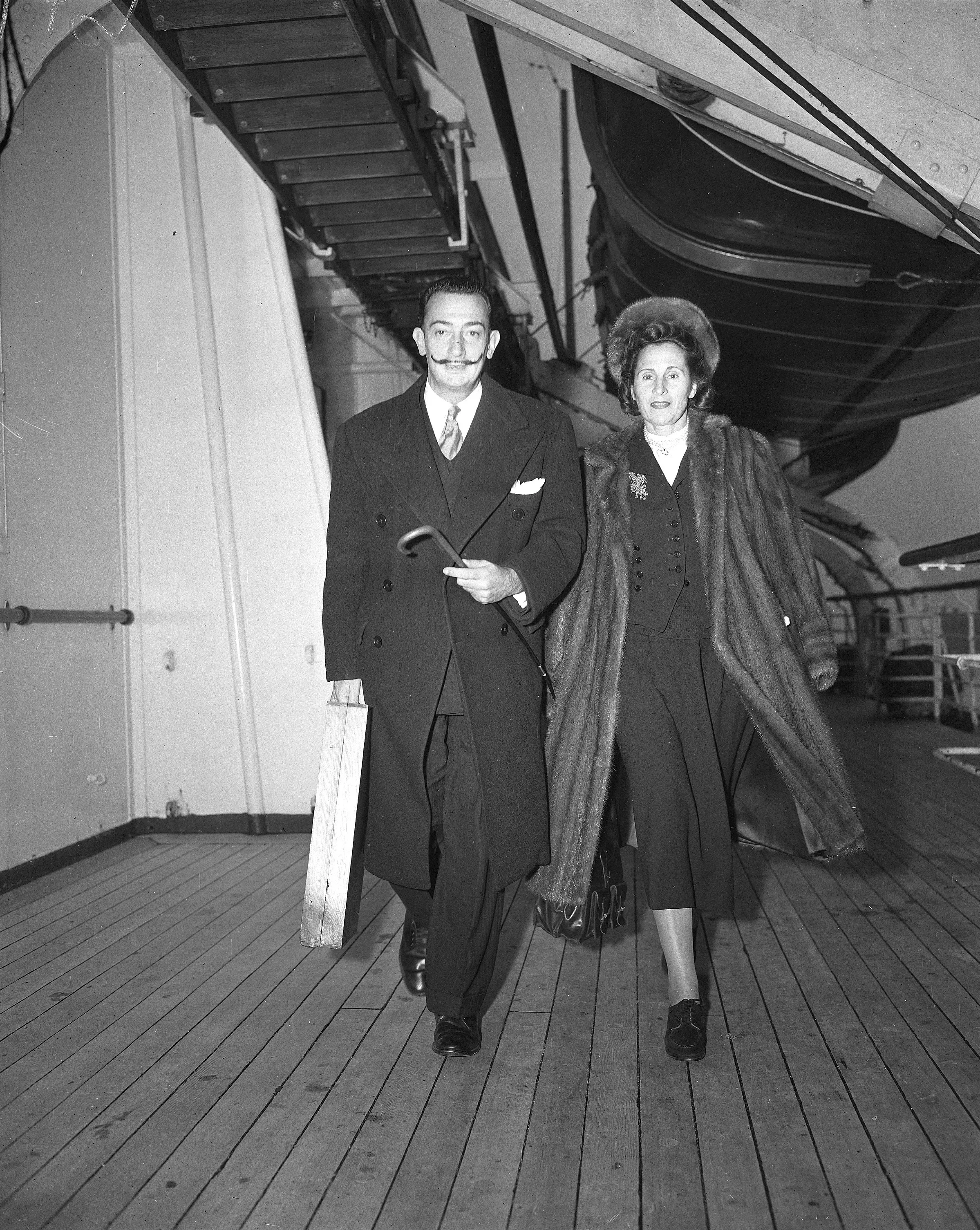 Salvador Dali is shown with his wife, Mrs. Gala Dali, as they arrive in New York on the S.S. America, December 21, 1949. (Photo by AP Photo/Rooney)
