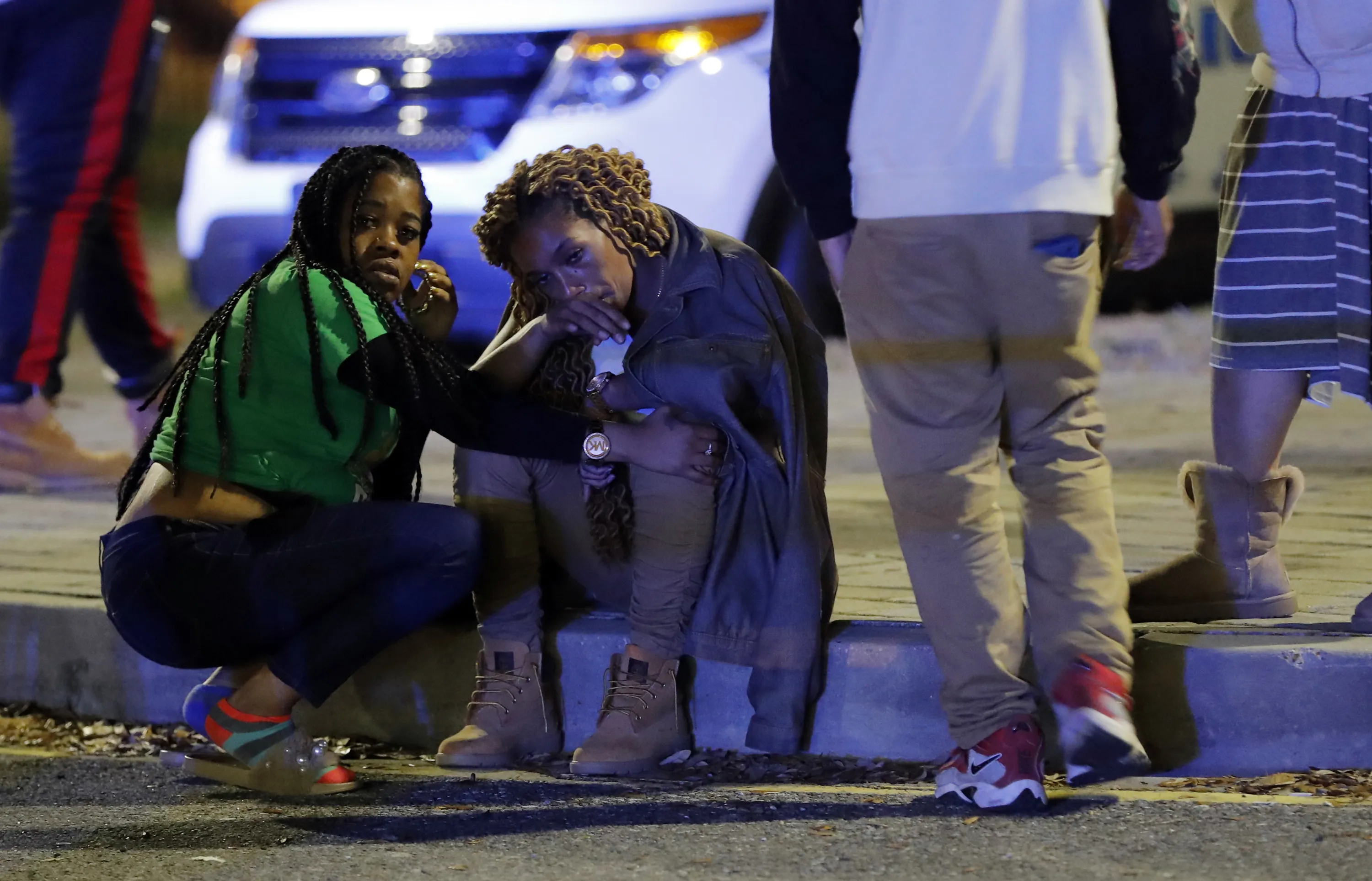 A woman is comforted as police investigate the scene of a Mardi Gras day shooting that left at least one dead and others injured, in the lower ninth ward in New Orleans, Tuesday, February 13, 2018. (Photo by Gerald Herbert/AP Photo)