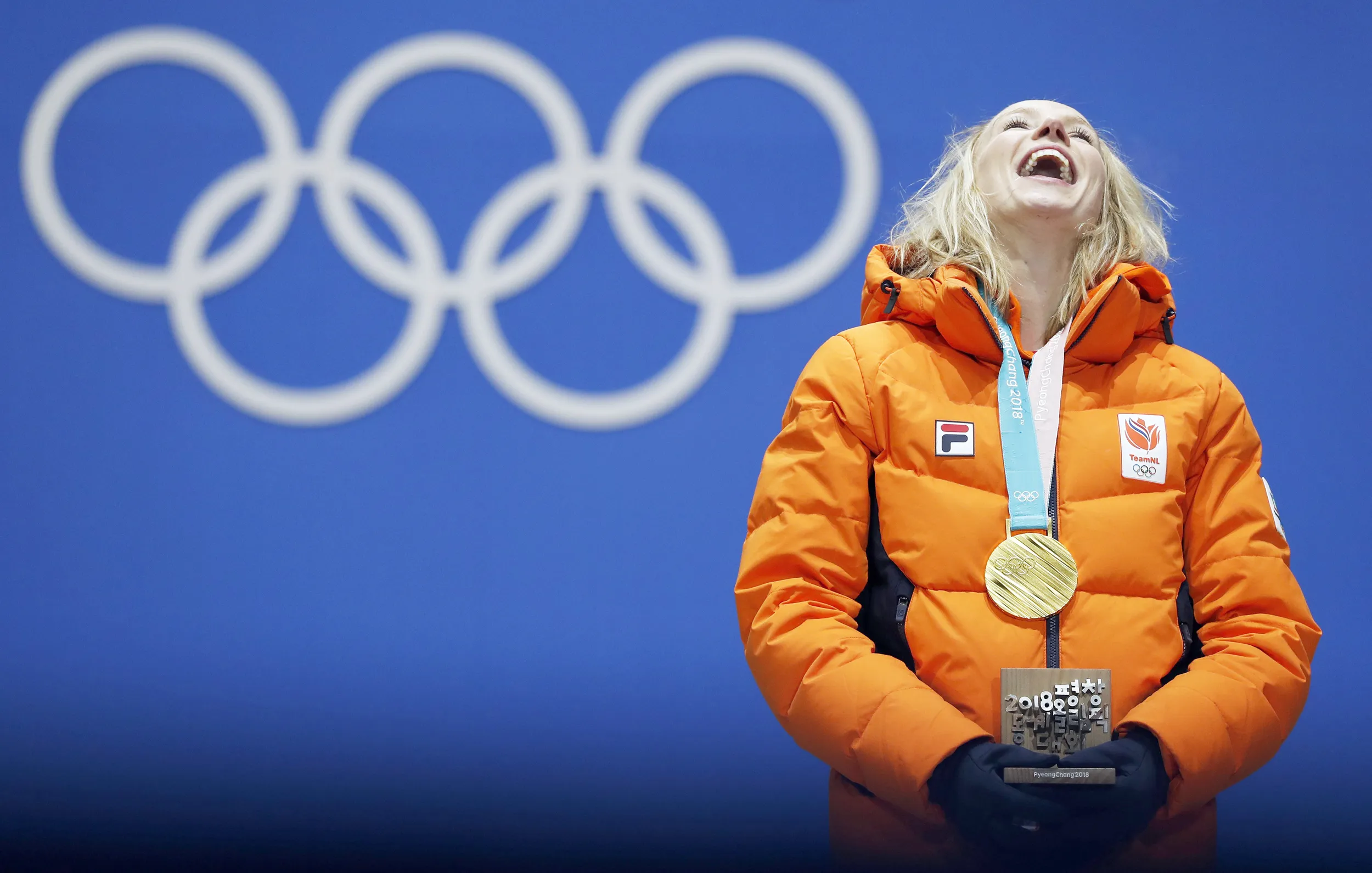Gold medalist Carlijn Achtereekte of the Netherlands smiles during the medal ceremony for the women's Speed Skating 3000m event during the PyeongChang 2018 Olympic Games, South Korea, 11 February 2018. (Photo by Jeon Heon-Kyun/EPA/EFE)