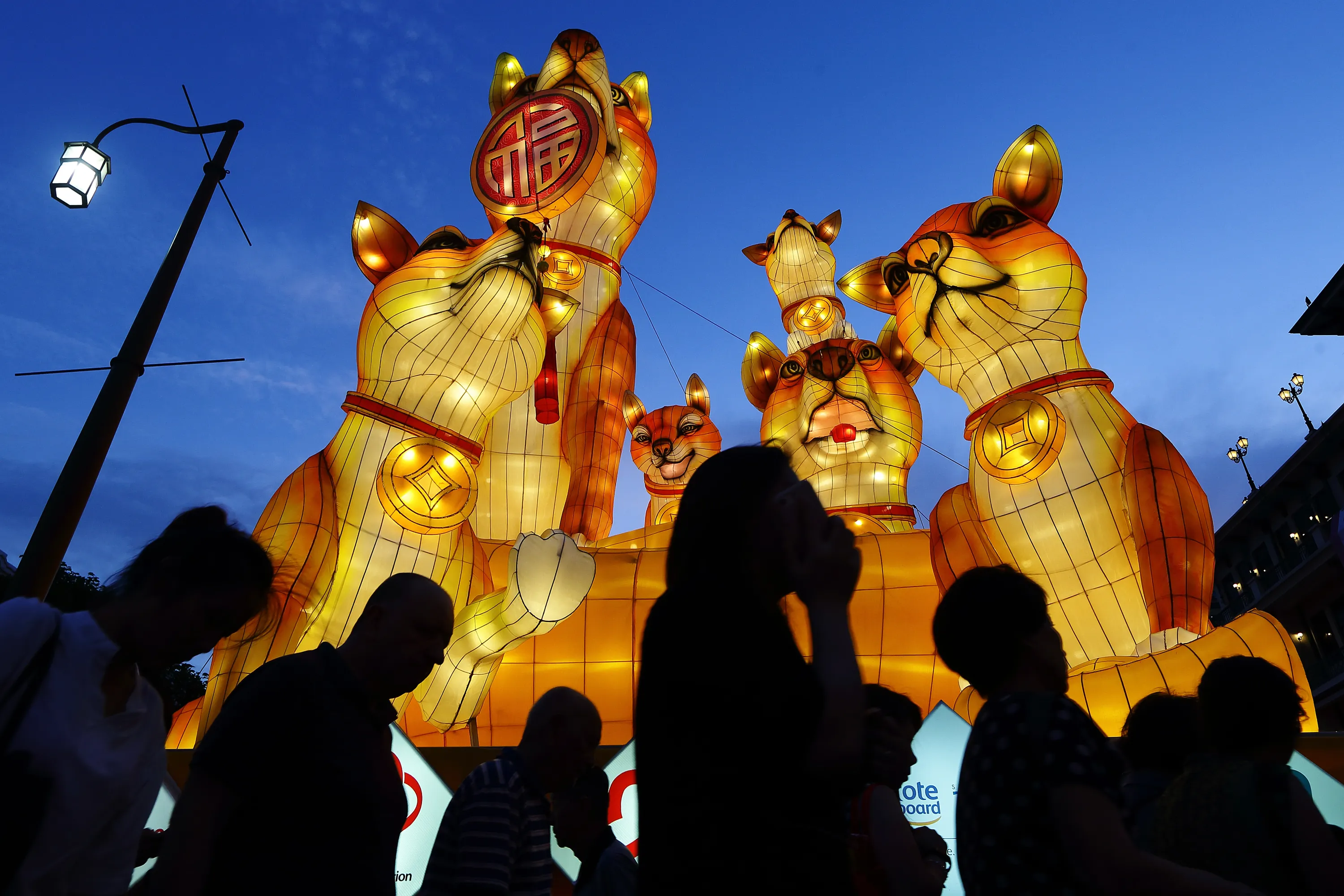 Giant dog lanterns loom over the road at at Chinatown on February 14, 2018 in Singapore. On February 16, people around the world will welcome the Year of the Dog, one of the most anticipated holidays on the Chinese calendar. Also known as the Spring festival or the Lunar New Year, the celebrations last for about 15 days. (Photo by Suhaimi Abdullah/Getty Images)