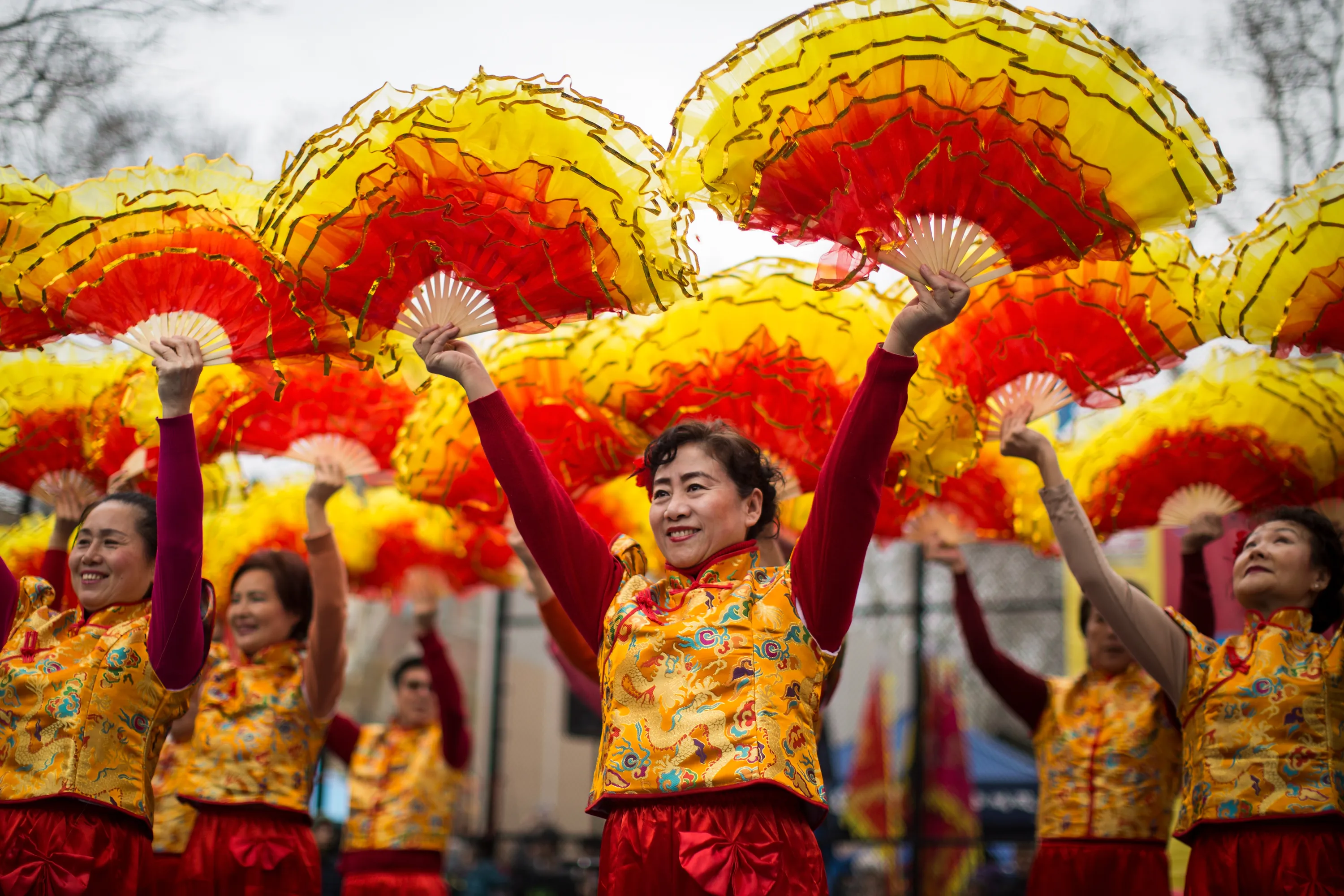 Dancers perform during a cultural festival to mark the first day of the Lunar New Year in Chinatown neighborhood in Manhattan, February 16, 2018 in New York City. The 2018 Chinese New Year, which is the year of the dog, begins on Friday and celebrations will last for over two weeks. (Photo by Drew Angerer/Getty Images)