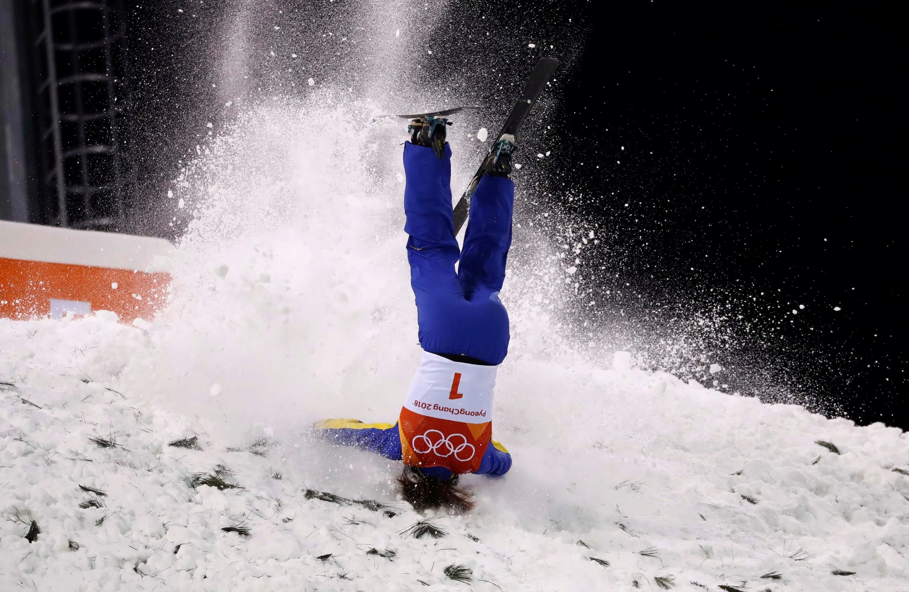 China' s Xu Mengtao falls during the women' s aerials final during the Pyeongchang 2018 Winter Olympic Games at the Phoenix Park in Pyeongchang on February 16, 2018. (Photo by Issei Kato/Reuters)