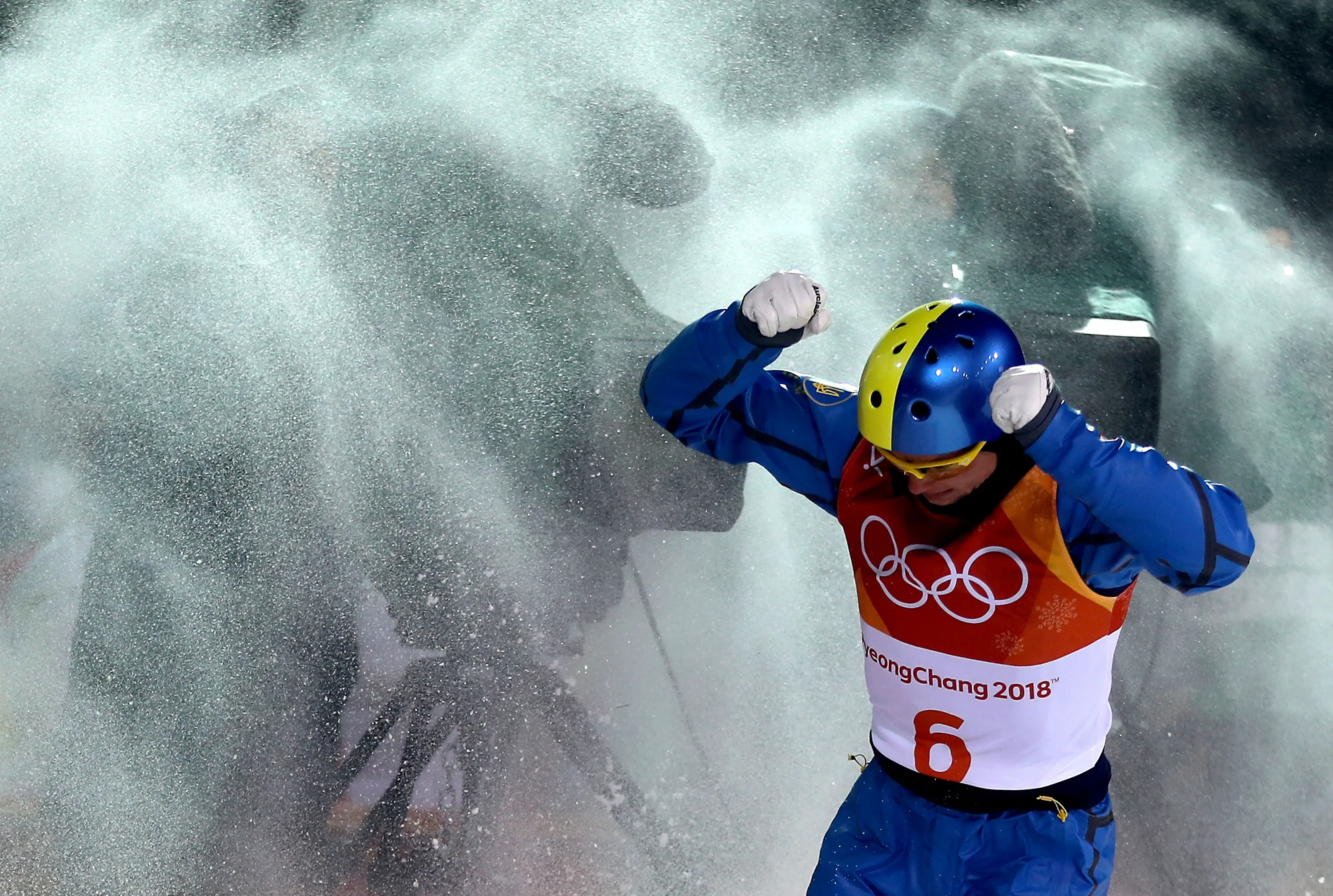 Olexandr Abramenko of the Ukraine reacts during the Men's Freestyle Skiing Aerials final competition at the Bokwang Phoenix Park during the PyeongChang 2018 Olympic Games, South Korea, 18 February 2018. (Photo by Fazry Ismail/EPA/EFE/Rex Features/Shutterstock)