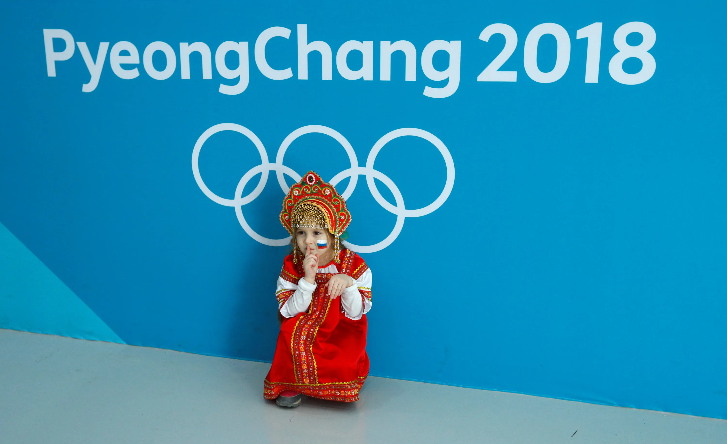 A young fan poses at the Olympic hockey venue during the men' s quarter- final ice hockey match between Norway and the Olympic Athletes from Russia (OAR) during the Pyeongchang 2018 Winter Olympic Games at the Gangneung Hockey Centre in Gangneung on February 21, 2018. (Photo by Brian Snyder/Reuters)