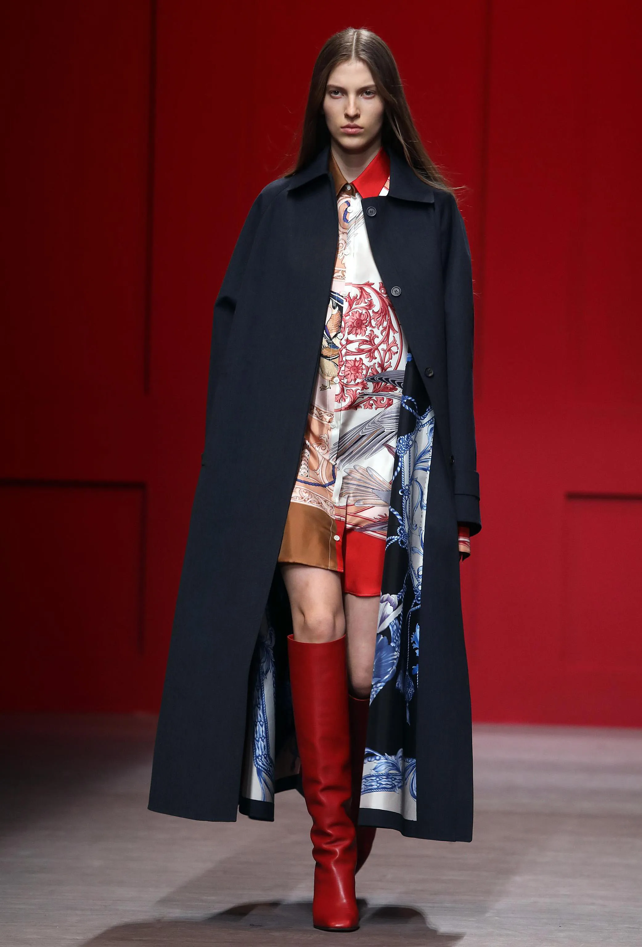 A model wears a creation as part of the Salavatore Ferragamo women's Fall/Winter 2018-2019 collection, presented during the Milan Fashion Week, in Milan, Italy, Saturday, February 24, 2018. (Photo by Matteo Bazzi/ANSA via AP Photo)