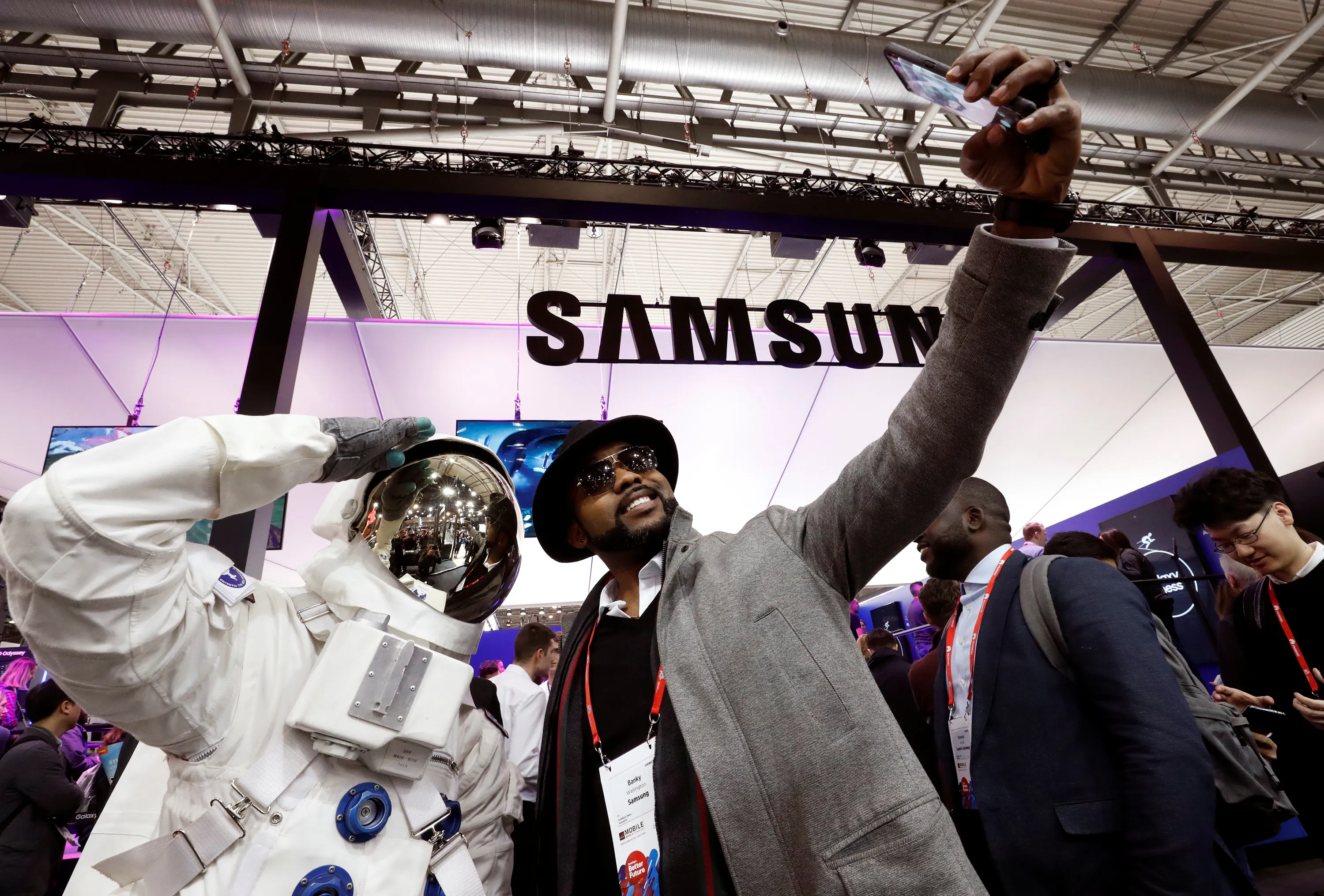 A visitors takes a selfie at Samsung booth during the Mobile World Congress in Barcelona, Spain, February 27, 2018. (Photo by Yves Herman/Reuters)