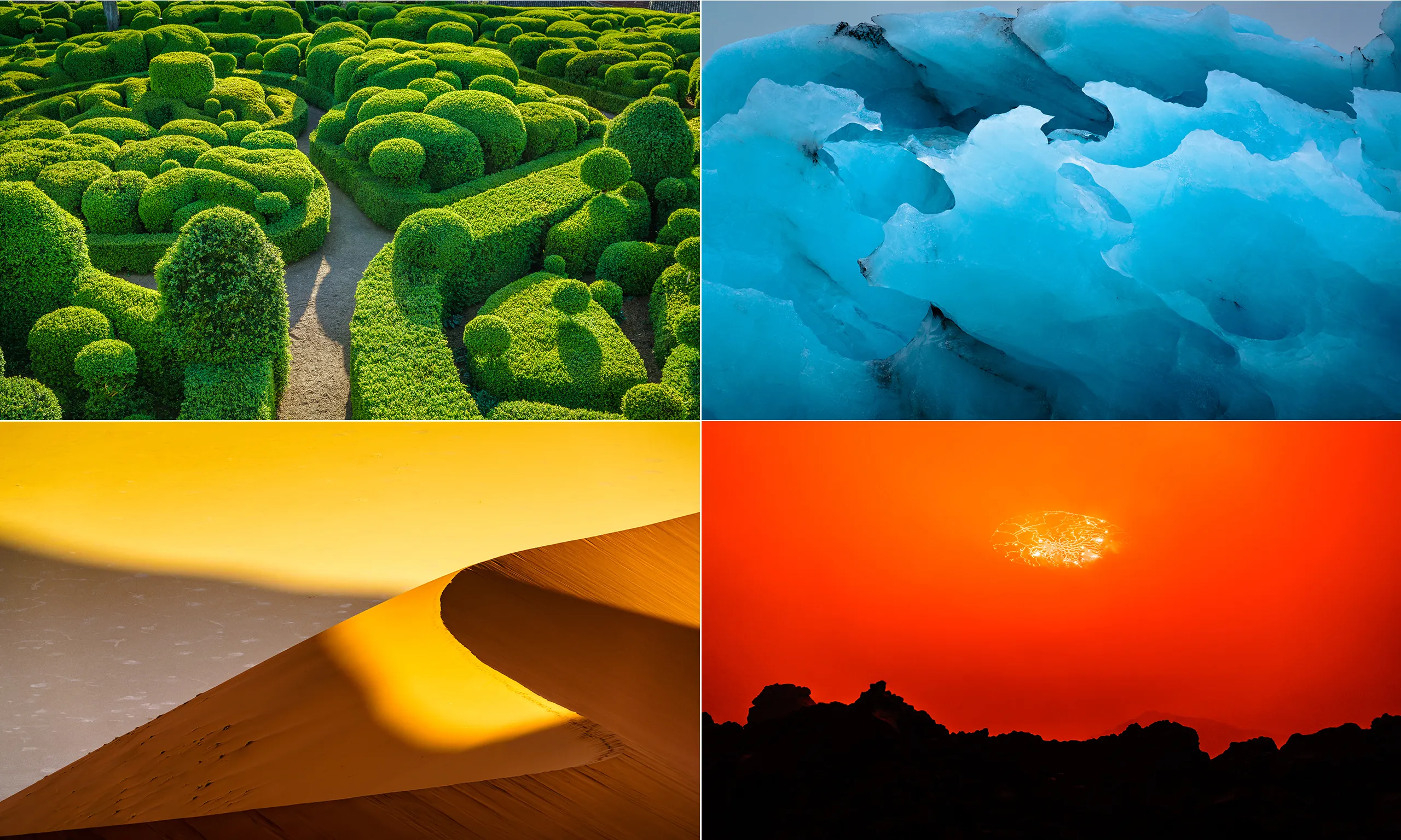 Elements. By Daniel Burton, winner: portfolio. Burton took his theme from the elements of nature (earth, wind, fire and water) for these images, which should be viewed as a set of four and have been arranged using colour theory, with red/green and yellow/blue diagonally opposite each other as per a colour wheel. (Photo by Daniel Burton/UK National Geographic Traveller Photography Competition 2018)