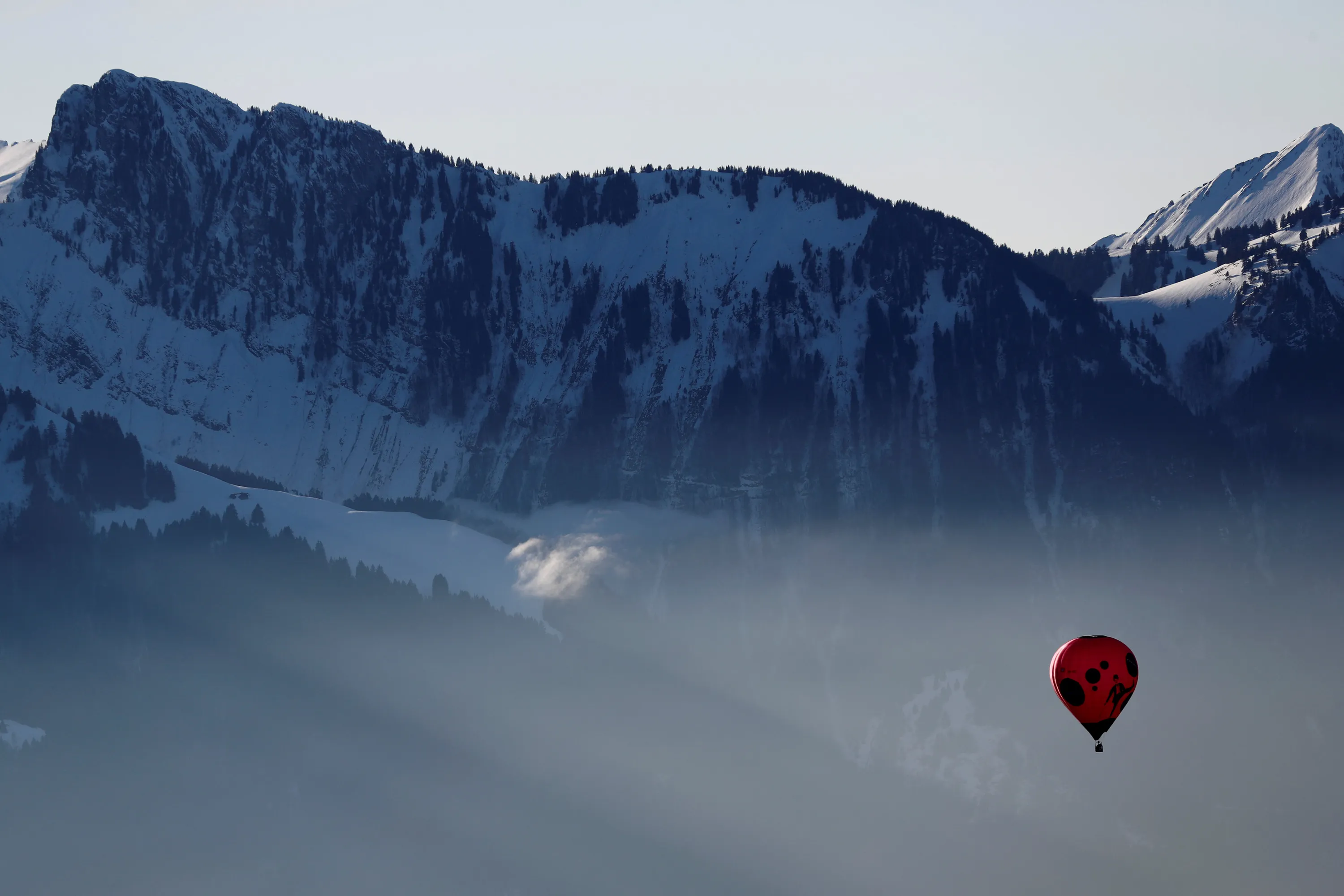 A balloon flies over Swiss mountains during the International Hot Air Balloon Week in Chateau-d'Oex, Switzerland January 27, 2018. (Photo by Stefan Wermuth/Reuters)