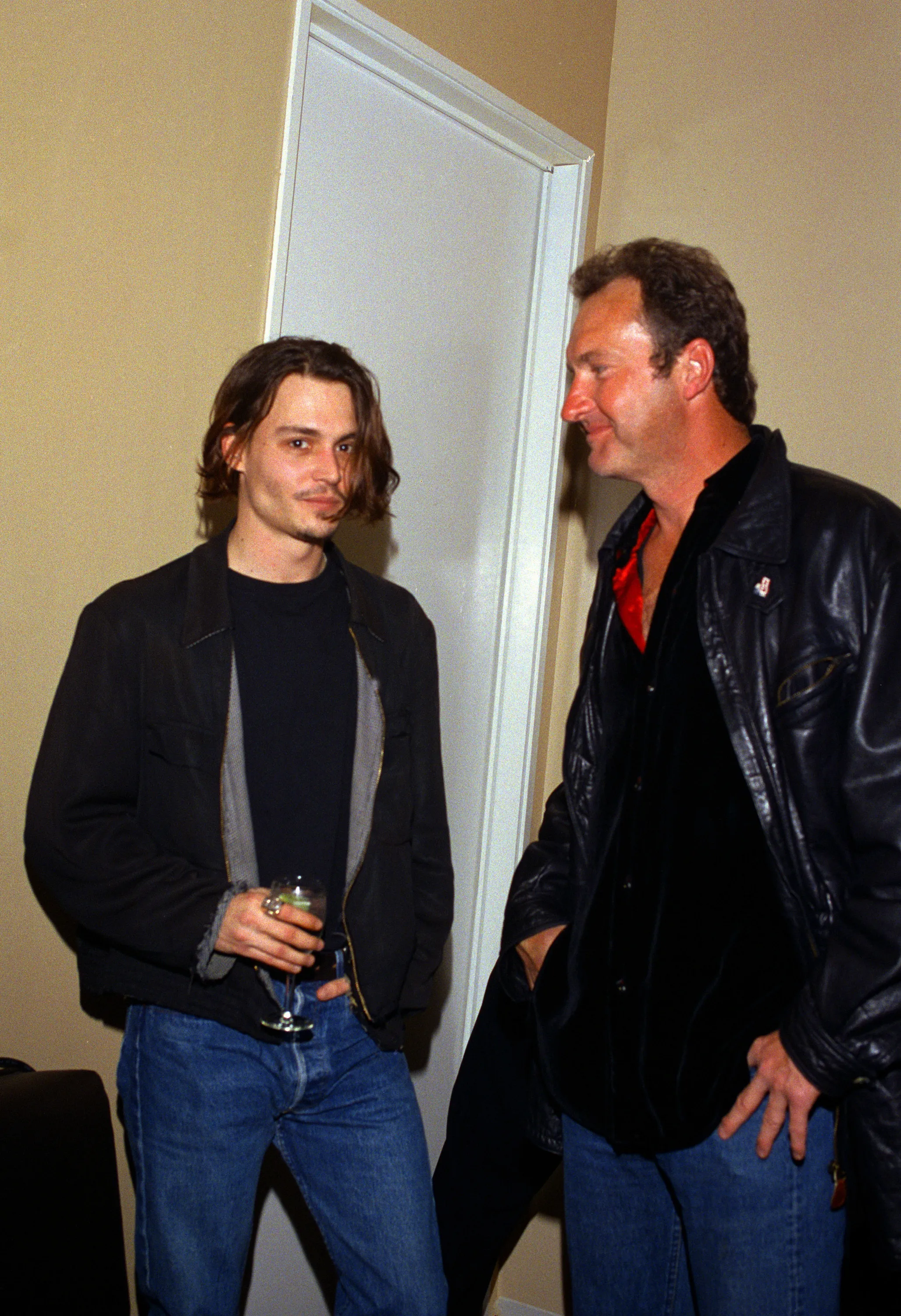 Actors Johnny Depp, left, and Randy Quaid share a moment during a benefit preview party for Depp's new short film, “Banter”, created to benefit Drug Abuse Resistance Education efforts, at Smashbox Studios, February 22, 1994, near Los Angeles. (Photo by Reed Saxon/AP Photo)