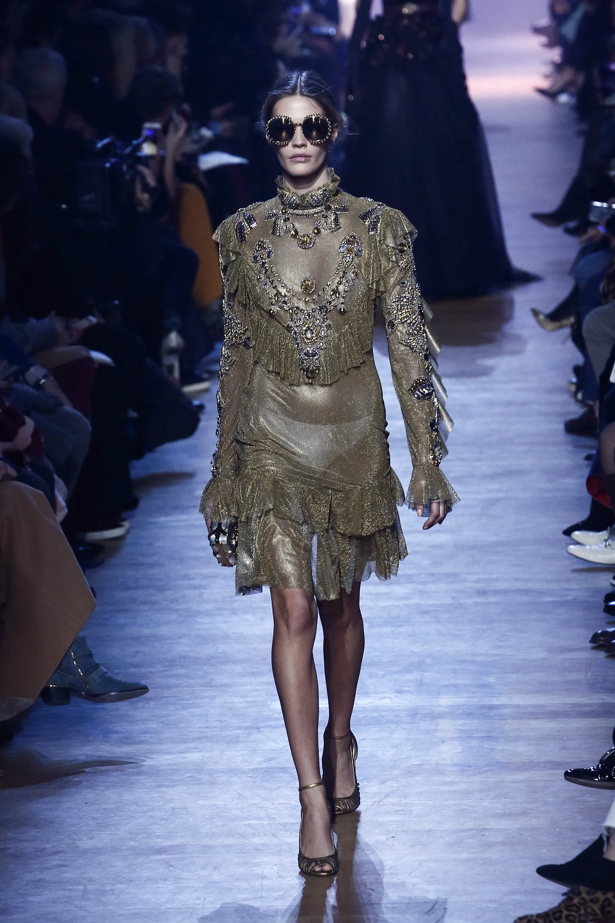 A model wears a creation for Elie Saab's ready-to-wear fall/winter 2018/2019 fashion week runway show in Paris, Saturday, March 3, 2018. (Photo by Kamil Zihnioglu/AP Photo)