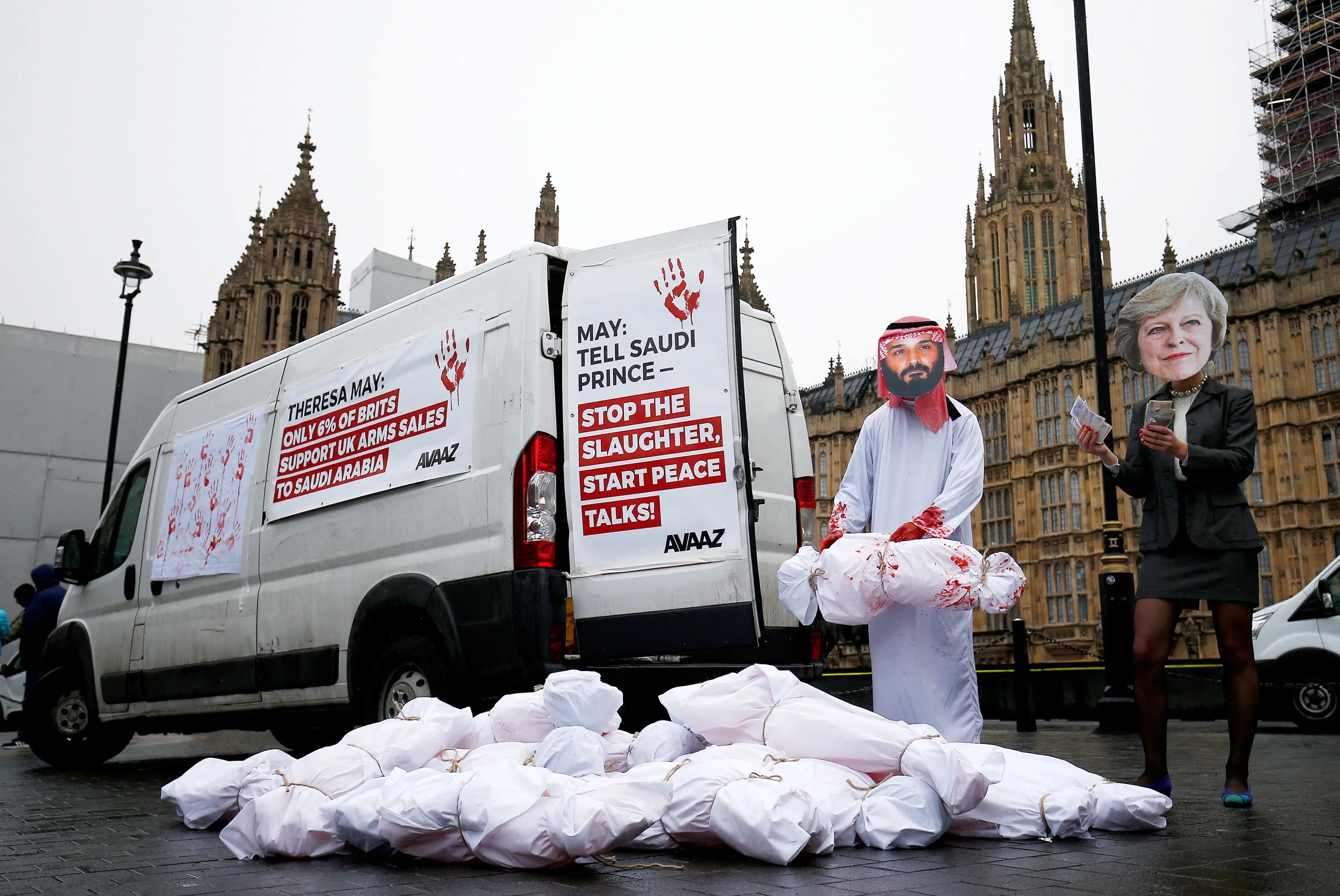 Activists from Avaaz stage a protest timed to coincide with the visit by Saudi Arabia's Crown Prince Mohammad bin Salman outside the Houses of Parliament in London, Britain, March 7, 2018. (Photo by Henry Nicholls/Reuters)