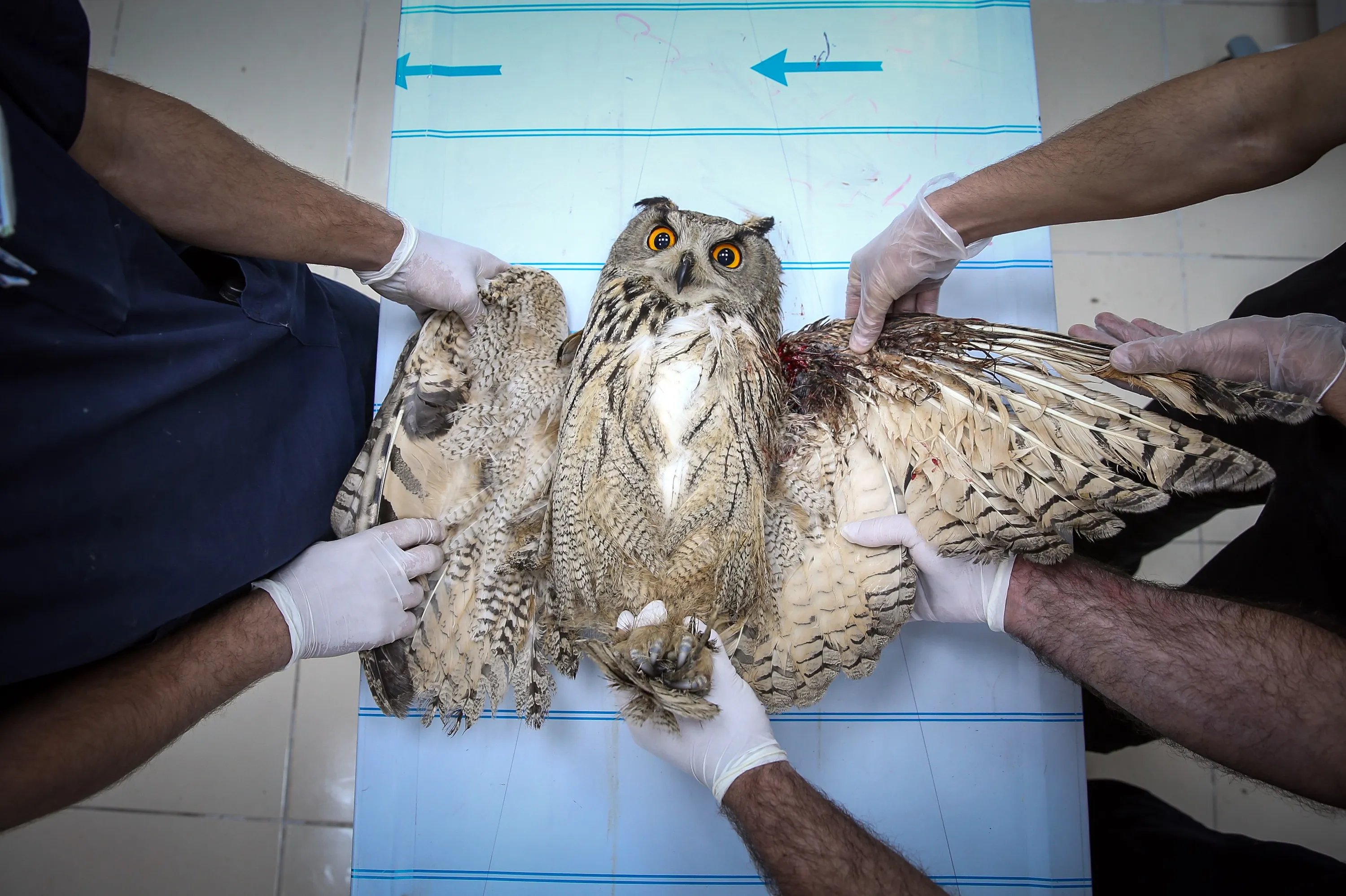 Dr. Lokman Aslan, who is the pioneer of Wildlife Rehabilitation Centre, treats an owl in Turkey's Van province on March 03, 2018. Aslan helps wild animals, which were wounded by hunters or suffer from malnutrition. (Photo by Ozkan Bilgin/Anadolu Agency/Getty Images)