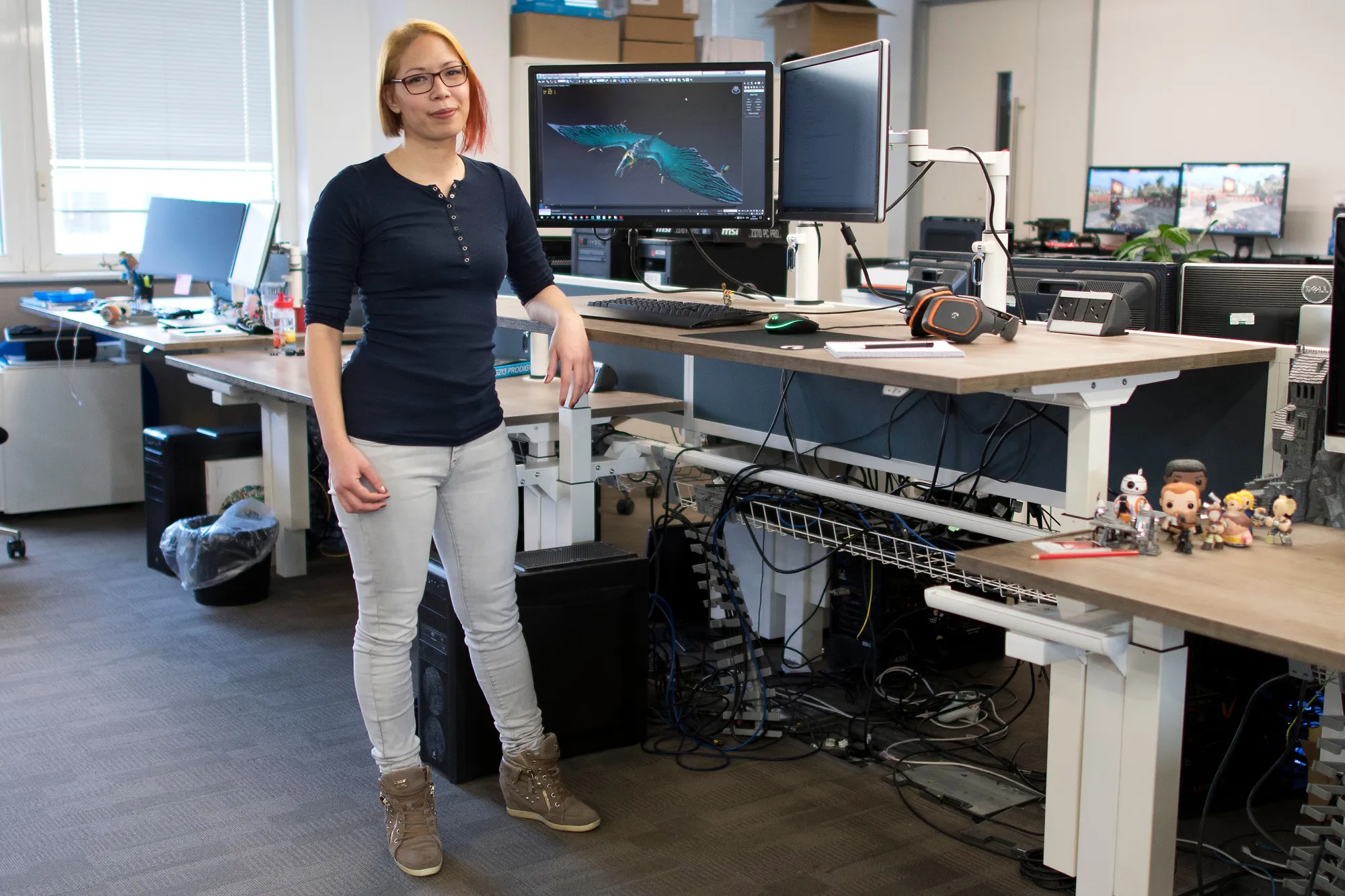 Jodie Azhar, 30, Lead Technical Artist on the Total War game series at Creative Assembly, poses for a portrait in her offices in Horsham, West Sussex, south of London, on February 23, 2018. (Photo by Justin Tallis/AFP Photo)