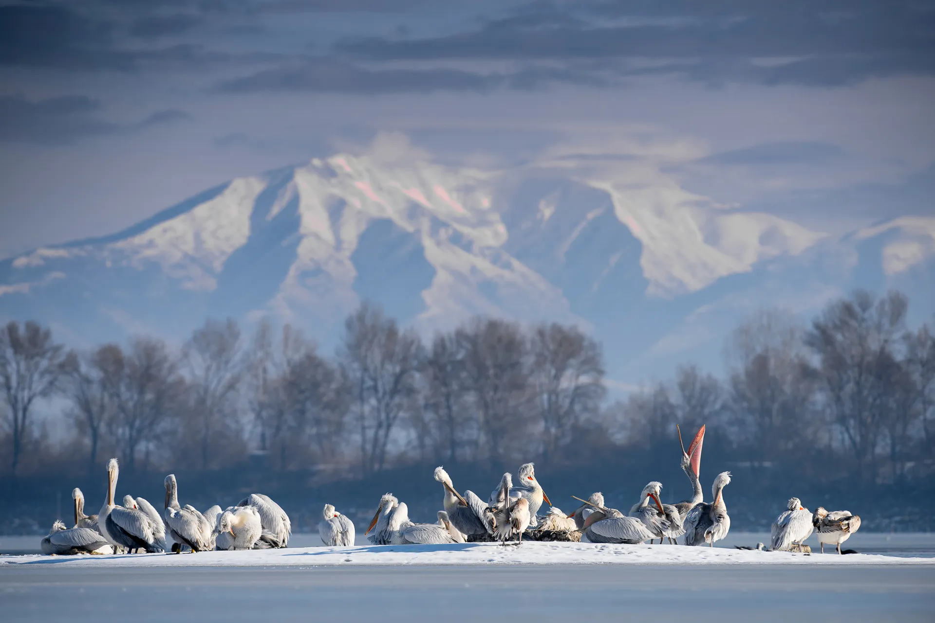 Dalmatian pelicans, Lake Kerkini, Greece. (Photo by Johan Siggesson/BPOTY/Cover Images/The Guardian)