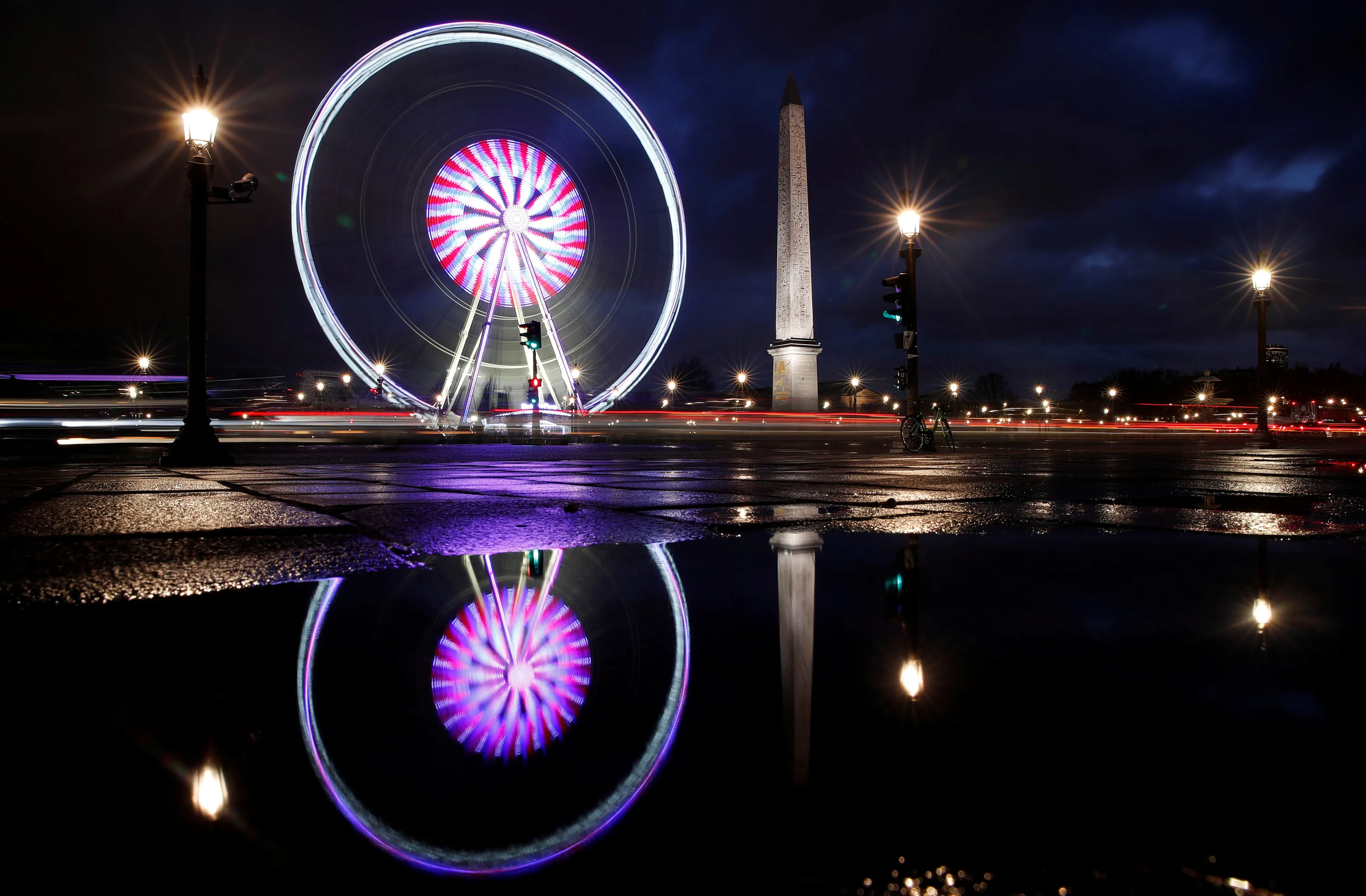 The giant Grande Roue de Paris ferris wheel fills the Paris skyline next to the Luxor Obelisk at the Place de la Concorde during Christmas illuminations in Paris, France, November 28, 2017. (Photo by Christian Hartmann/Reuters)