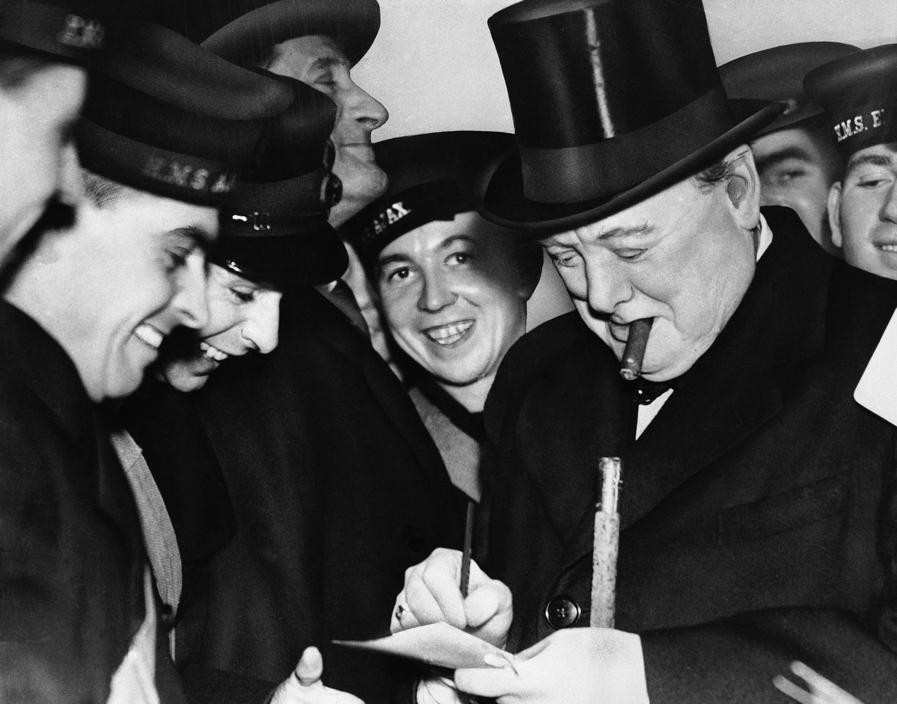 These British sailors seem pretty glad to get an autograph from the Boss, Winston Churchill, first lord of the British admiralty, who mingled with men from the cruisers Ajax and Exeter during the celebration, February 23, 1940 in London. Churchill (with cigar) was on hand to welcome home the men who helped drive the German pocked battleship, Admiral Graf Spee, to? suicide last December Off Uruguay. (Photo by AP Photo)