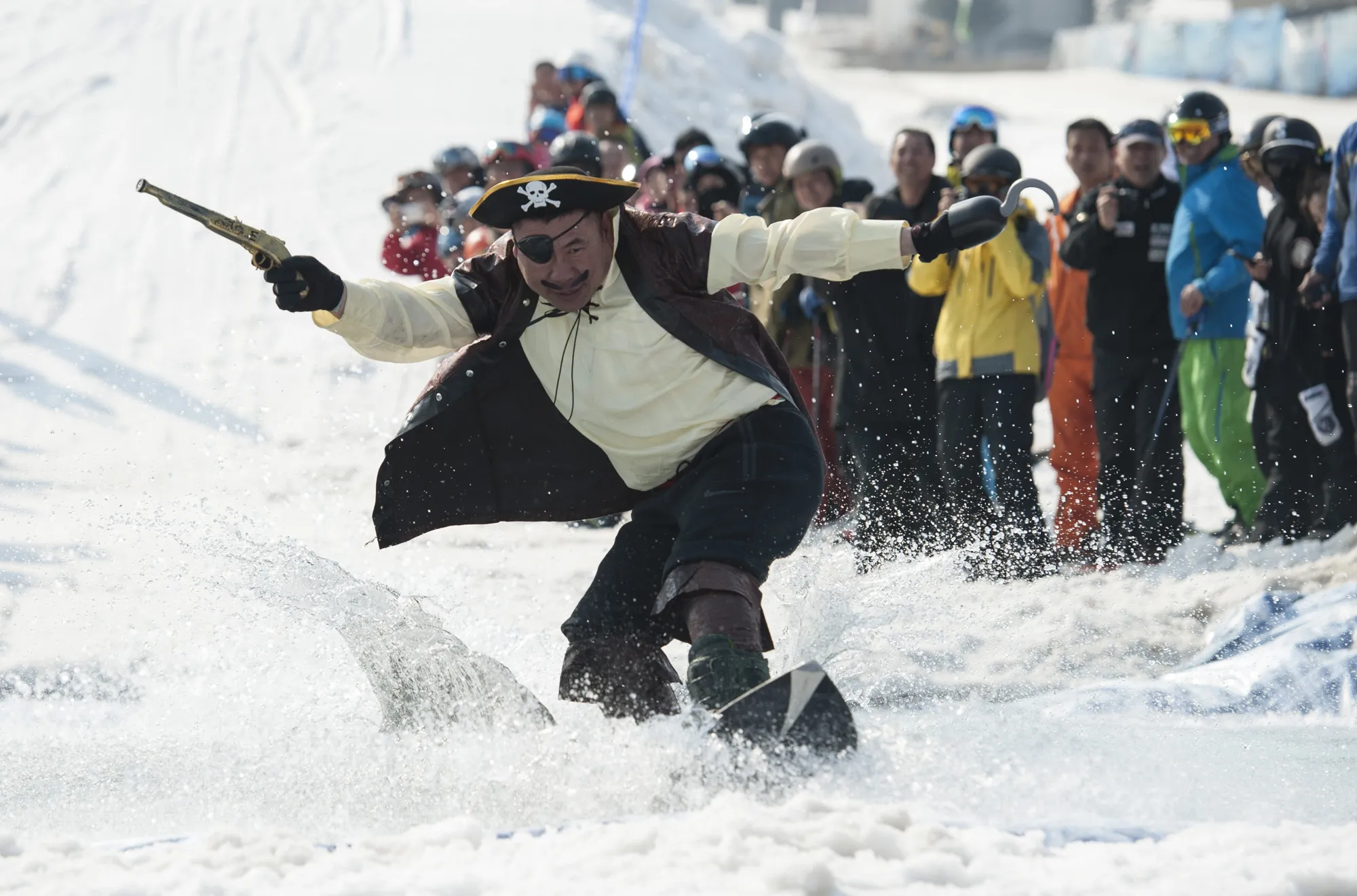 A man dressed as a pirate skis during the Naked Pig Skiing Carnival at the Yabuli Ski Resort on March 24, 2018 in Harbin of Heilongjiang Province, northeast China. (Photo by Tao Zhang/Getty Images)