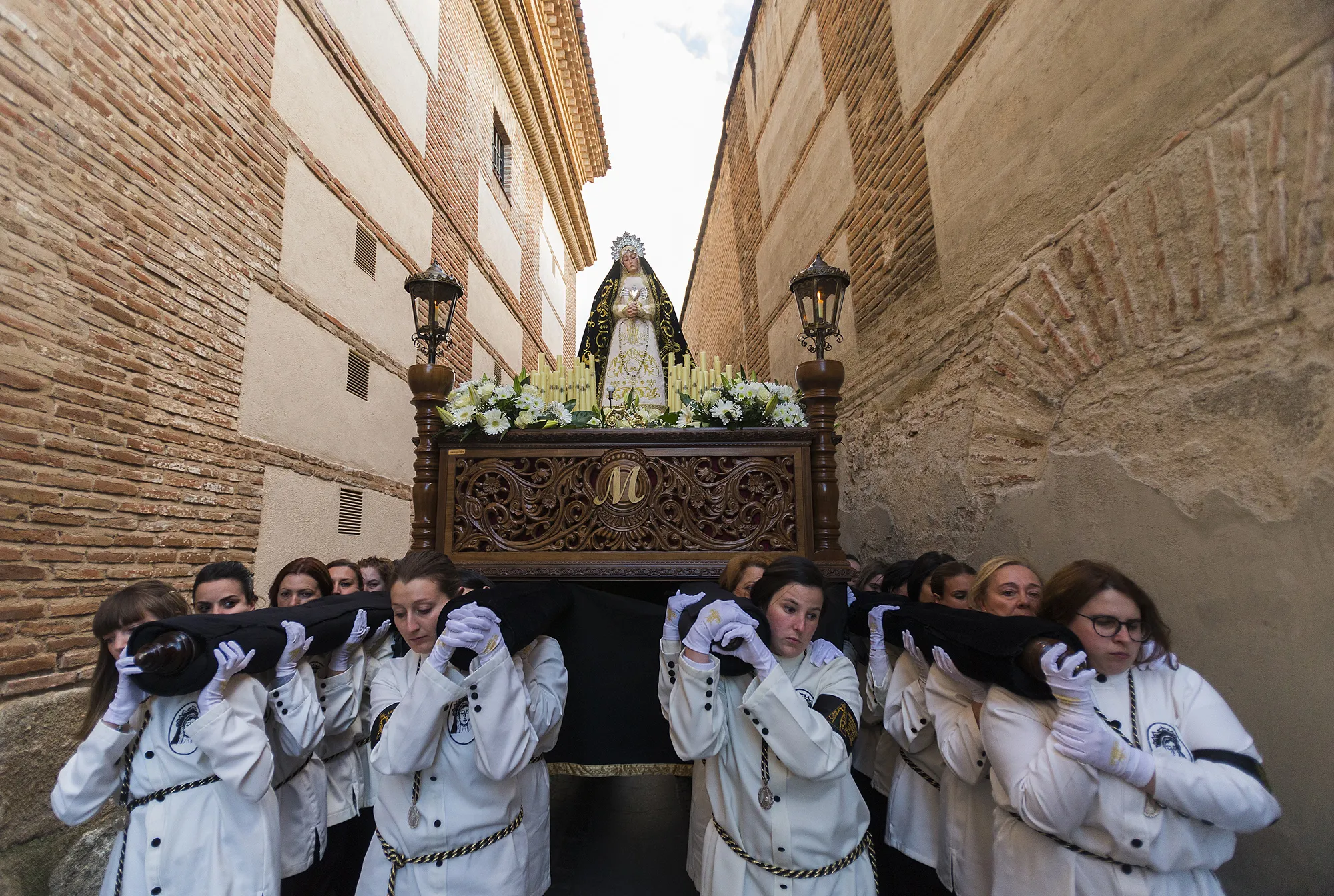The cofradia of “La Dolorosa” of Cebolla is formed only by women. Tipacamente a world reserved for men in their majority, the “costaleras” are only women and carry an image of the “Virgen de la Dolorosa” in the procession of the region where 10 different villages meet, accompanied by thousands of people