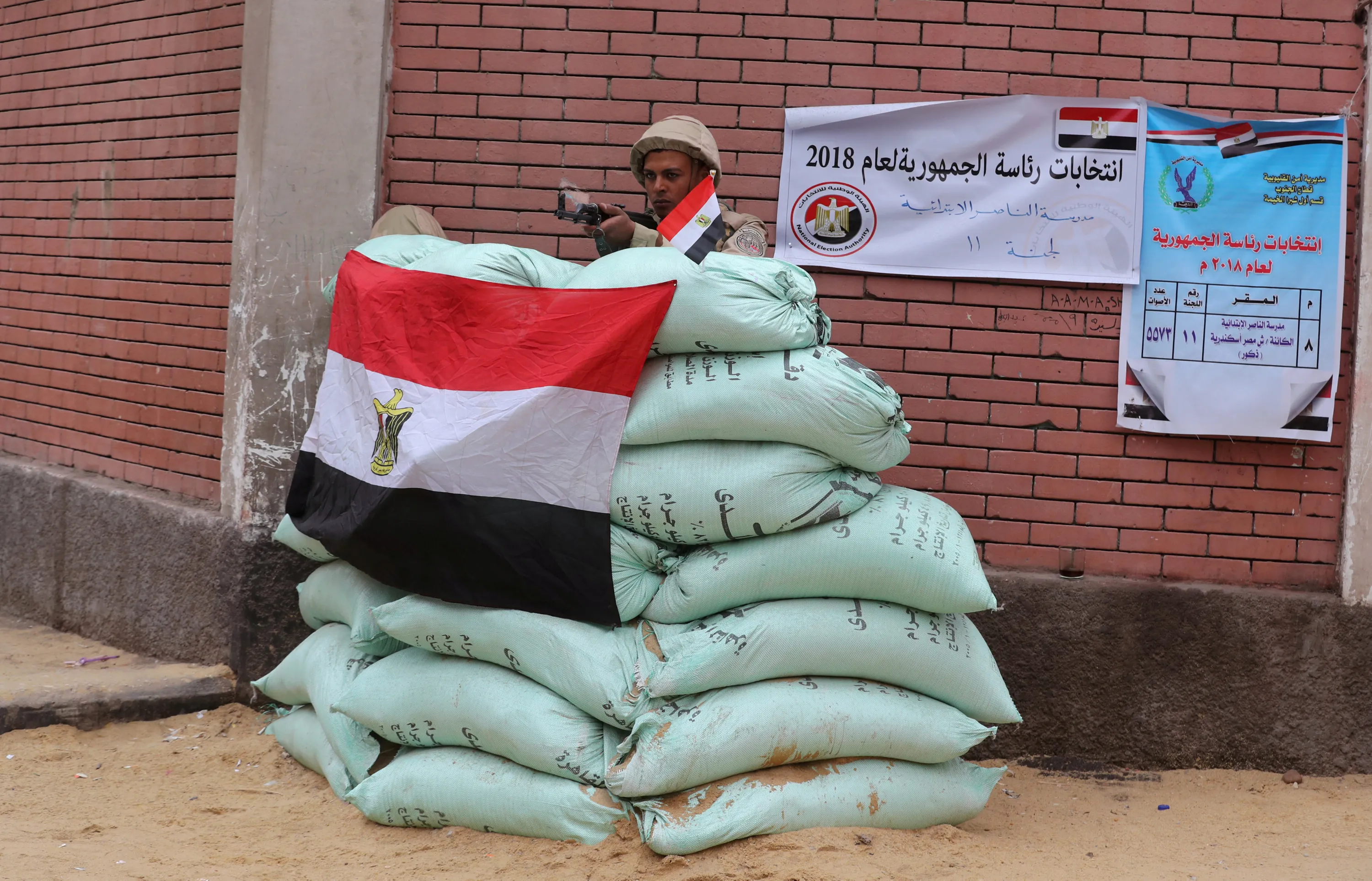 An Egyptian army soldier stands guard outside a polling station during the last day of the presidential election in Cairo, Egypt March 28, 2018. (Photo by Mohamed Abd El Ghany/Reuters)