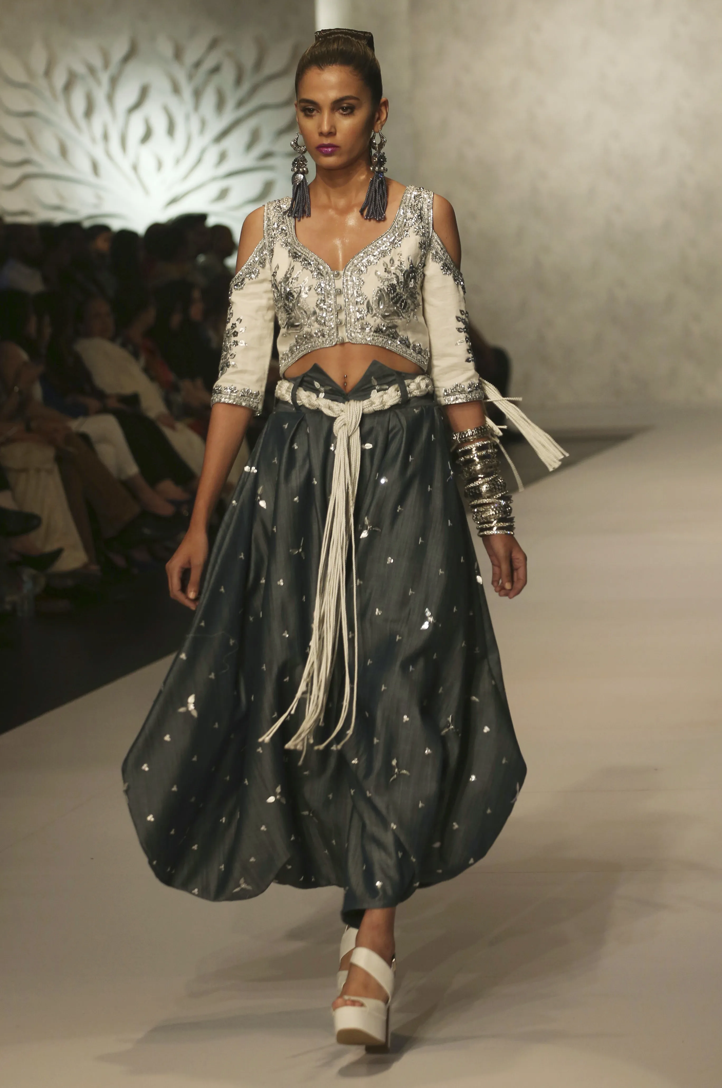 A model presents a creation by Pakistani designer Rizwan Beyg during the Hum Fashion Week in Karachi, Pakistan, Thursday, March 29, 2018. (Photo by Shakil Adil/AP Photo)