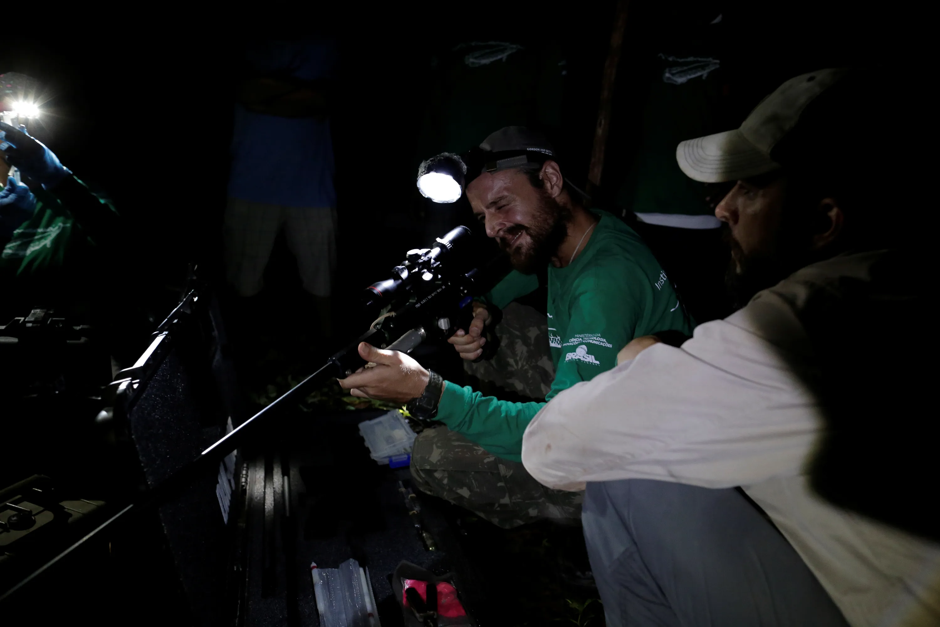 Researcher Diogo Maia Grabin prepares to tranquillise a black male jaguar at the Mamiraua Sustainable Development Reserve in Uarini, Amazonas state, Brazil, March 6, 2018. (Photo by Bruno Kelly/Reuters)